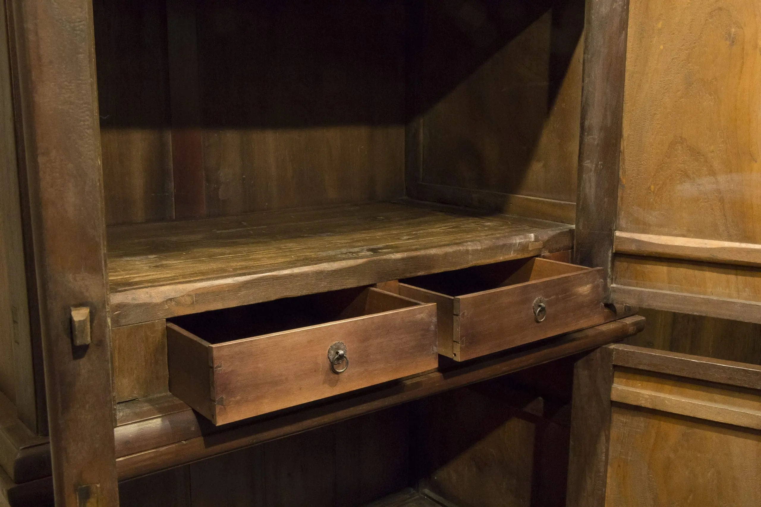 | Description | Stacked cabinet and chest set, with inlaid carvings of the key design around the door panels. |