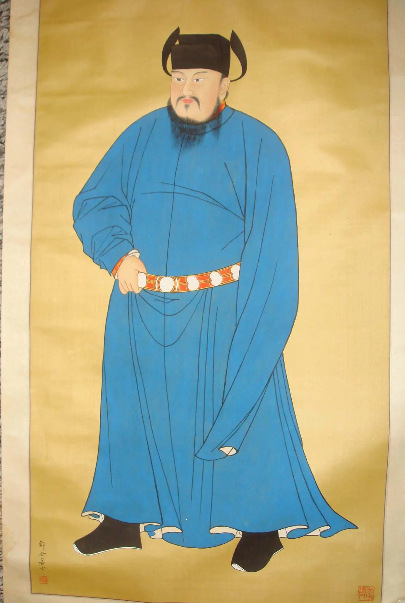| Description | An ancestral portrait of Emperor Zhuangzong, the founder of the Later Tang Dynasty, dressed in a blue robes on gold background. Zhuangzong was known for his exemplary military skills, during the Five Dynasties and Ten Kingdoms period. |