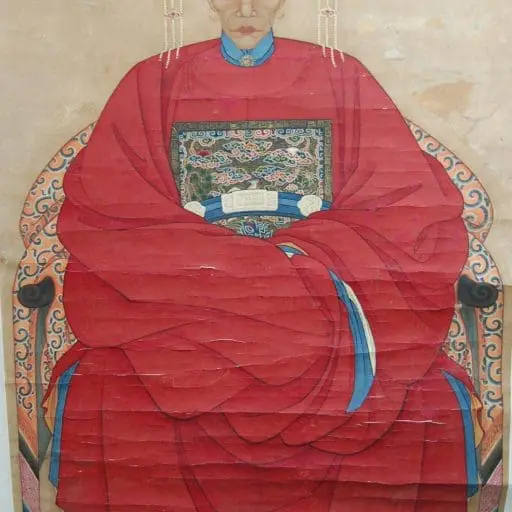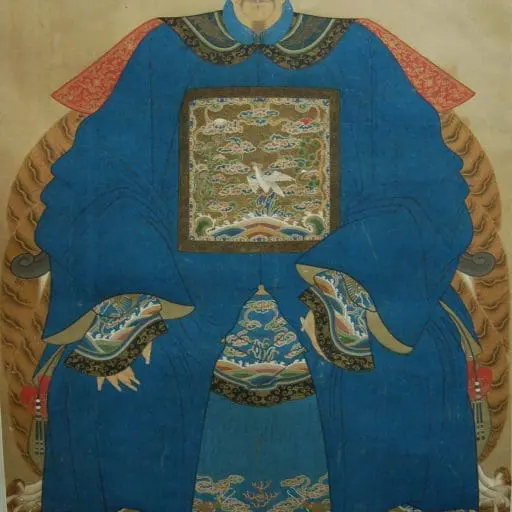 | Description | Song Dynasty portrait: white-robed official with red sash, seated on red, gold backdrop. Zhanjiao futou hat enforced decorum, preventing whispers. Official's attire and pose reflect rank and dignity. |