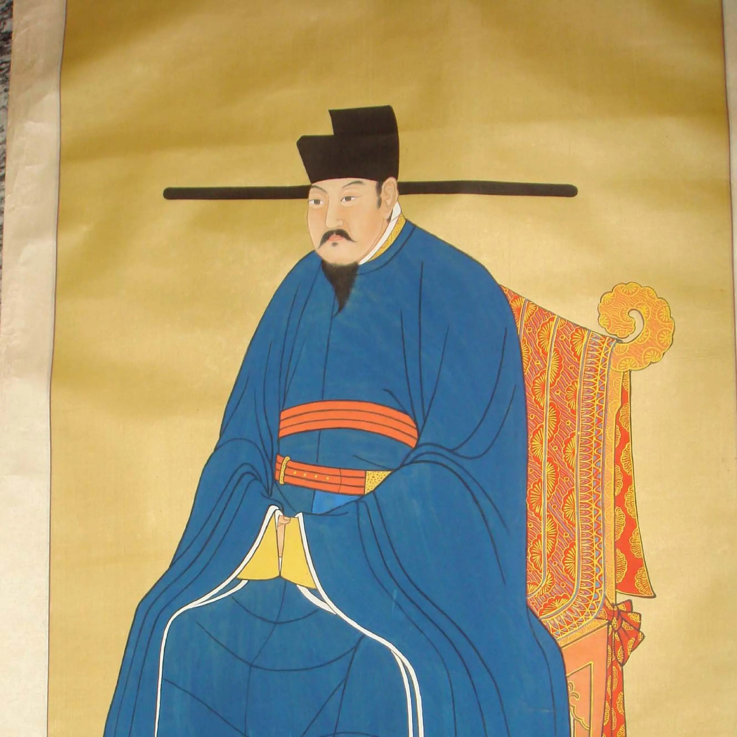 | Description | Song Dynasty portrait: blue-robed official with orange sash, seated on red, gold backdrop. Zhanjiao futou hat, designed to prevent whispers, signifies official status and decorum during assemblies. |