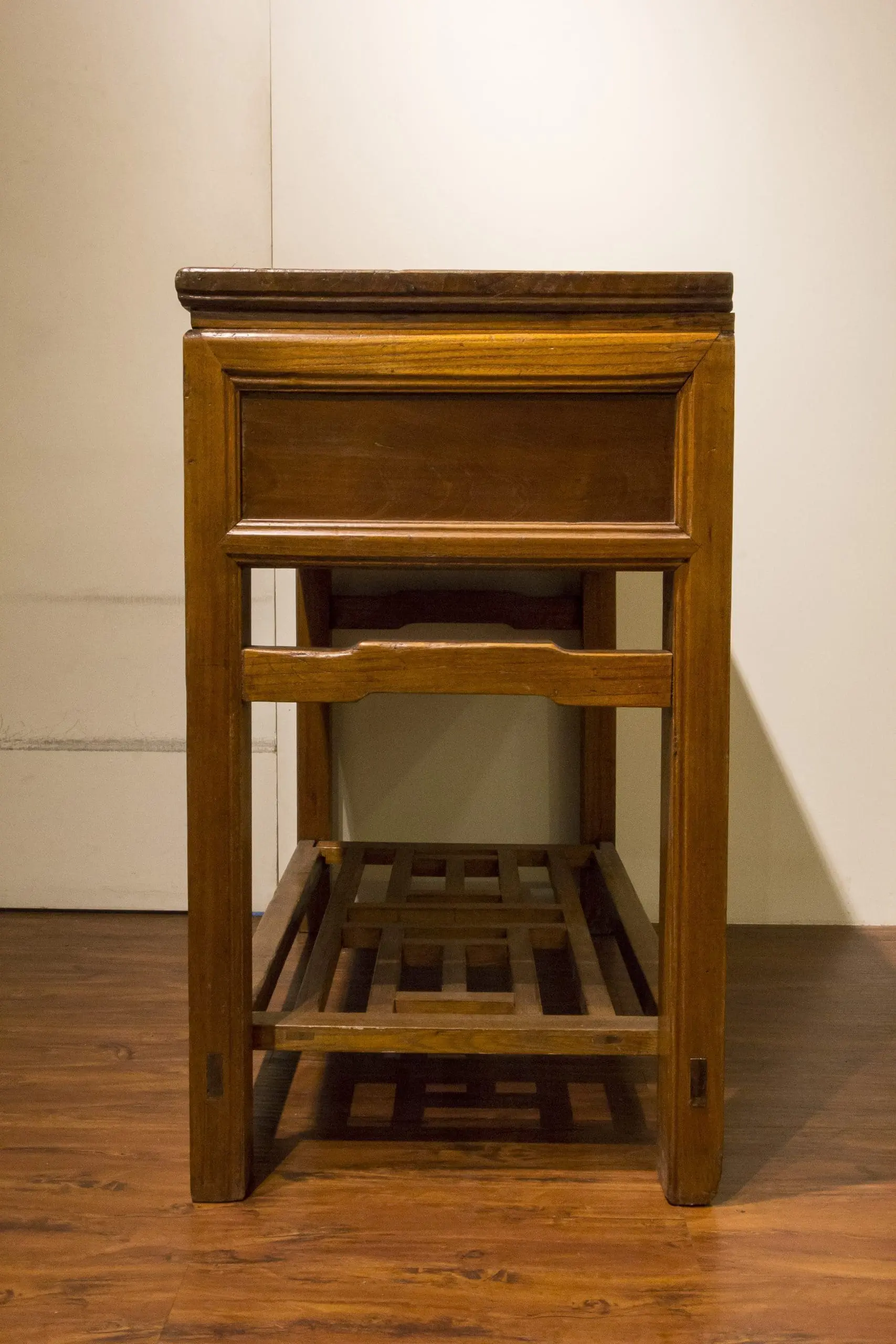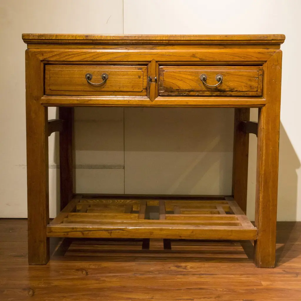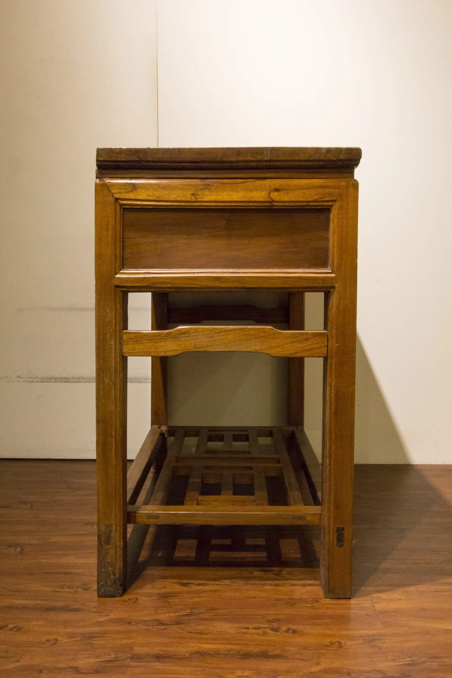 | Description | A 2 drawer desk with stretcher, rectangular legs, beautifully grained wood. |
