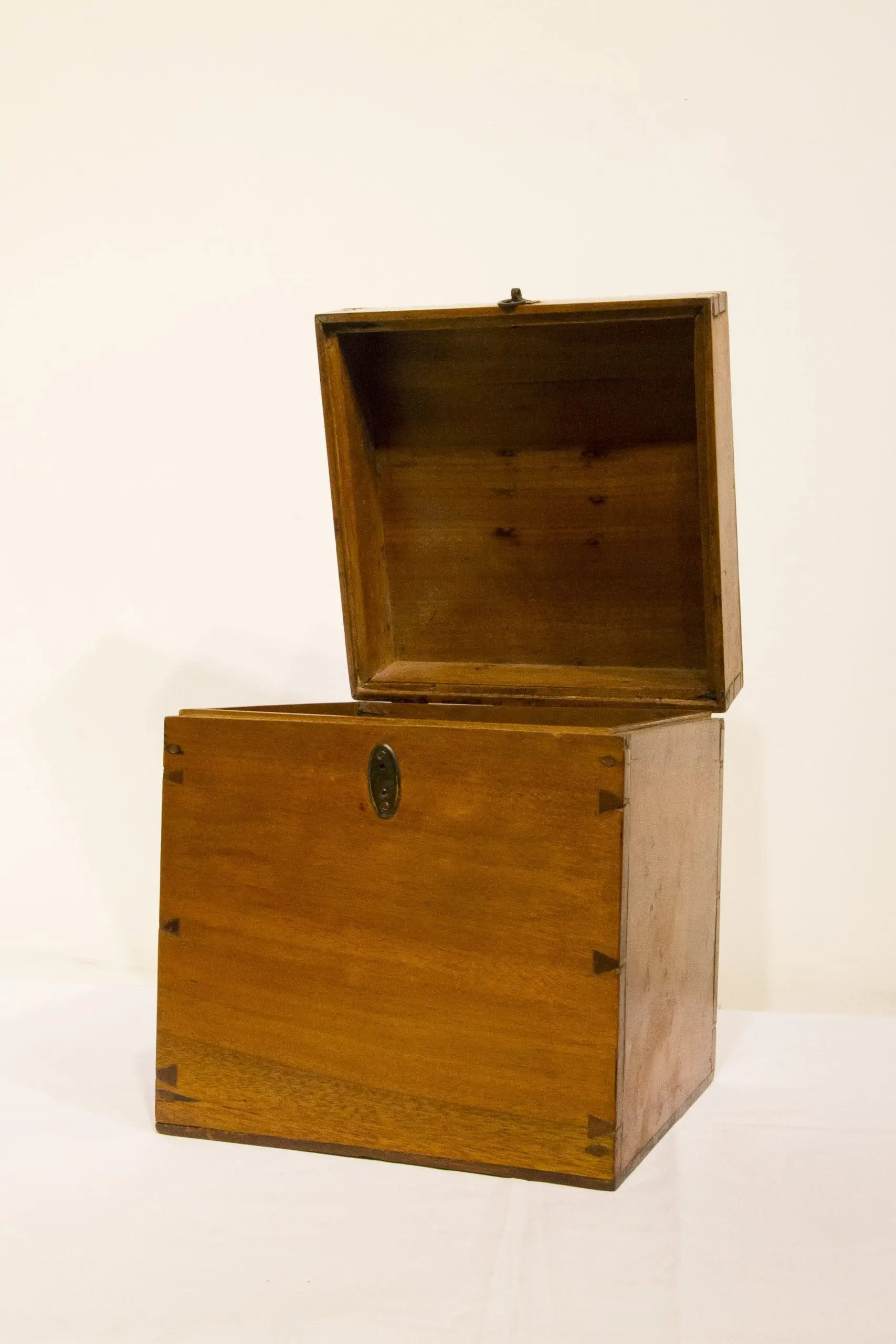 This elegant mid-19th century Chinese document box, crafted from aromatic camphor wood, features traditional dovetail joinery. A simple brass clasp and lock ring secure the lid. Its understated design highlights the natural wood grain, ensuring lasting durability.