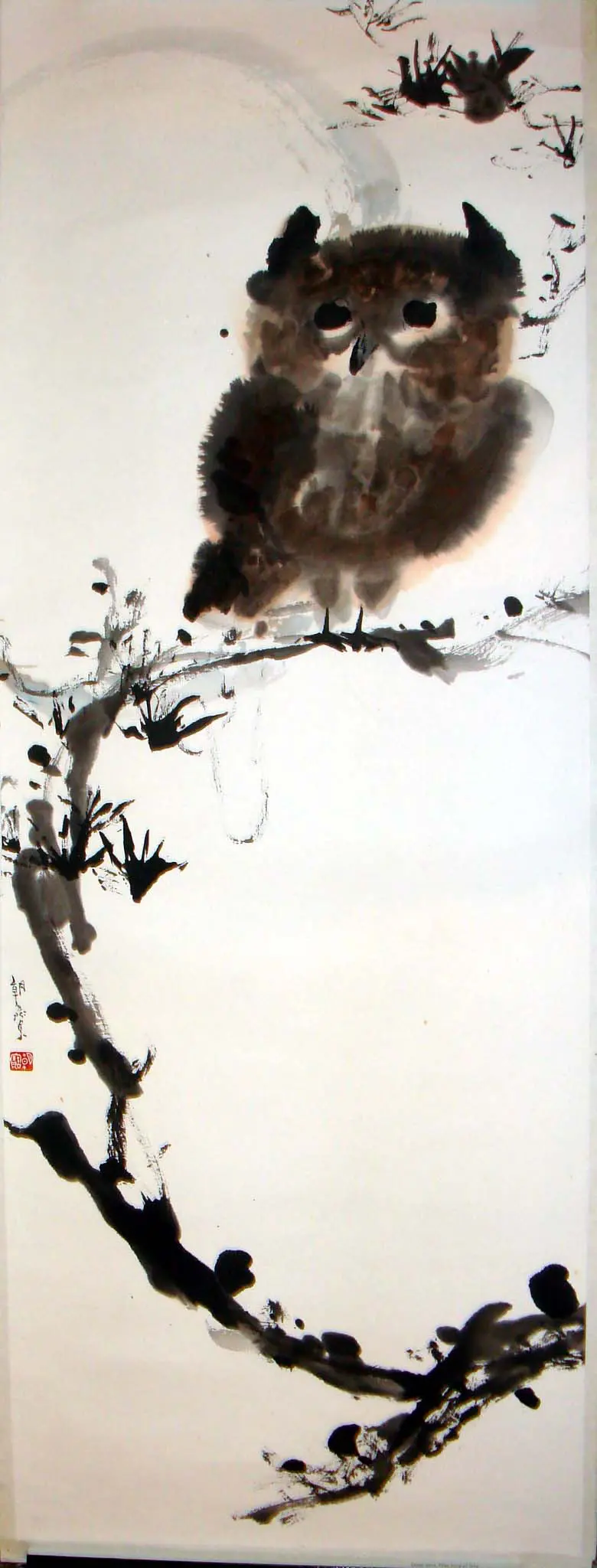 | Description | Chen Chao-pao’s “The Owl” captures a solitary owl on a pine branch with expressive ink brushwork. Bold eyes and soft feather textures contrast with the abstract elegance of the branch. The composition evokes wisdom, stillness, and quiet observation in a modern ink-literate fusion. |