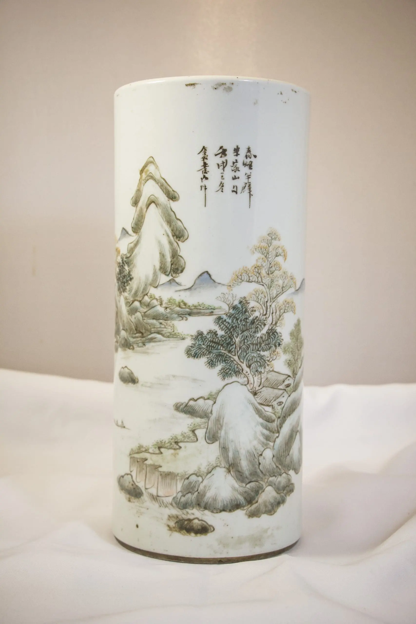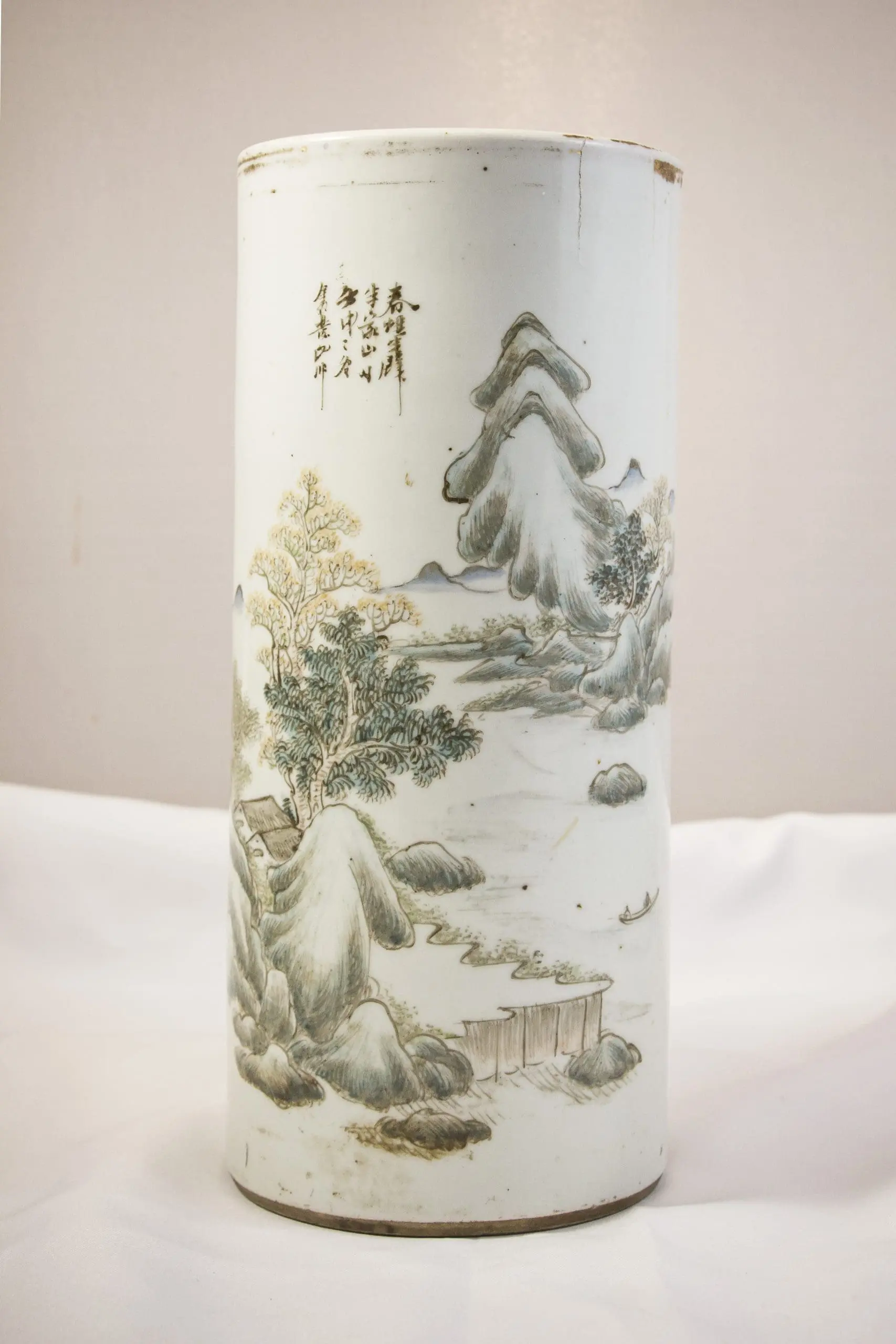 | Description | A pair of hat stands with overglaze polychrome landscape designs painted by artist Huang Ru in “Qianjiang cai style”, known for delicate and expressive brushstrokes. The calligraphy inscription describes the resting of clouds, and silence of mountains in the cyclical year Bingzi. |