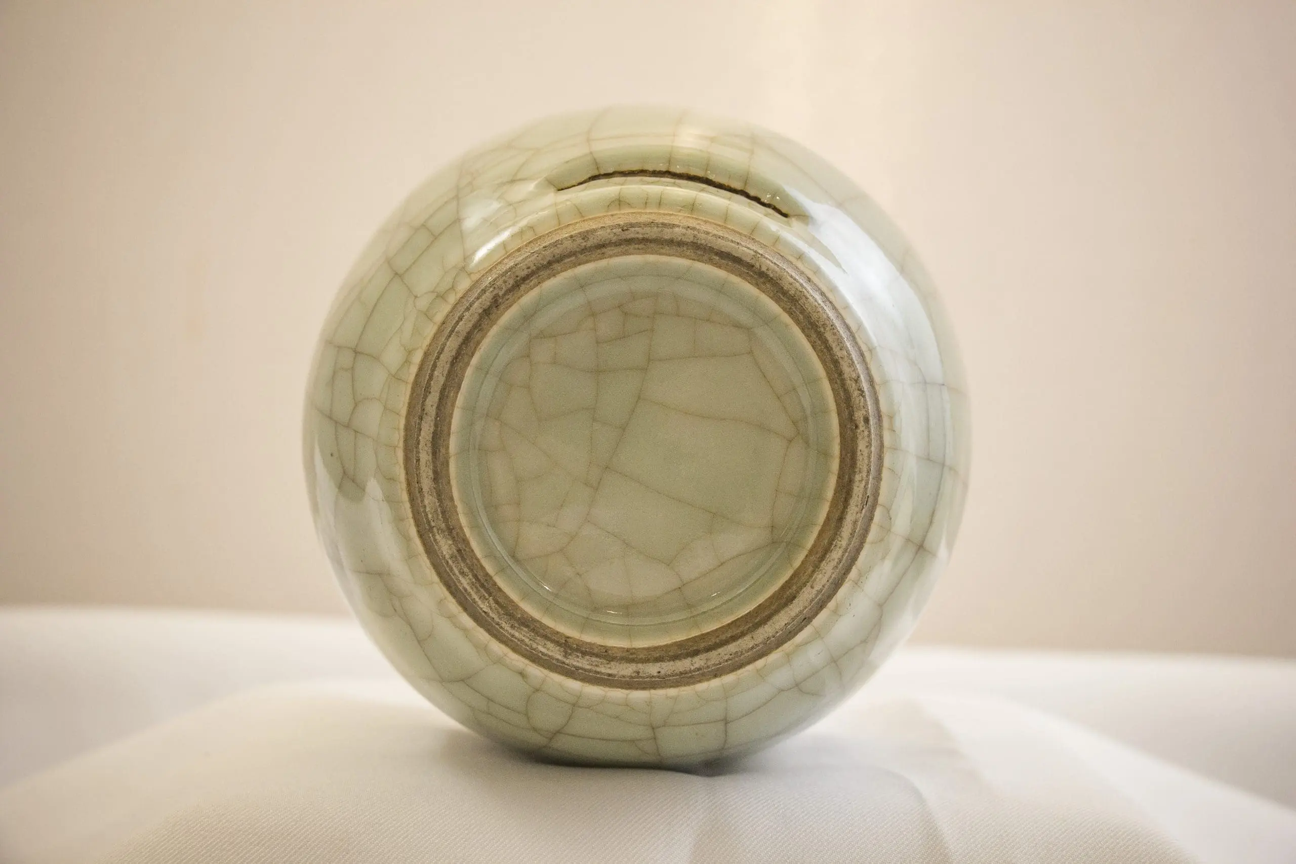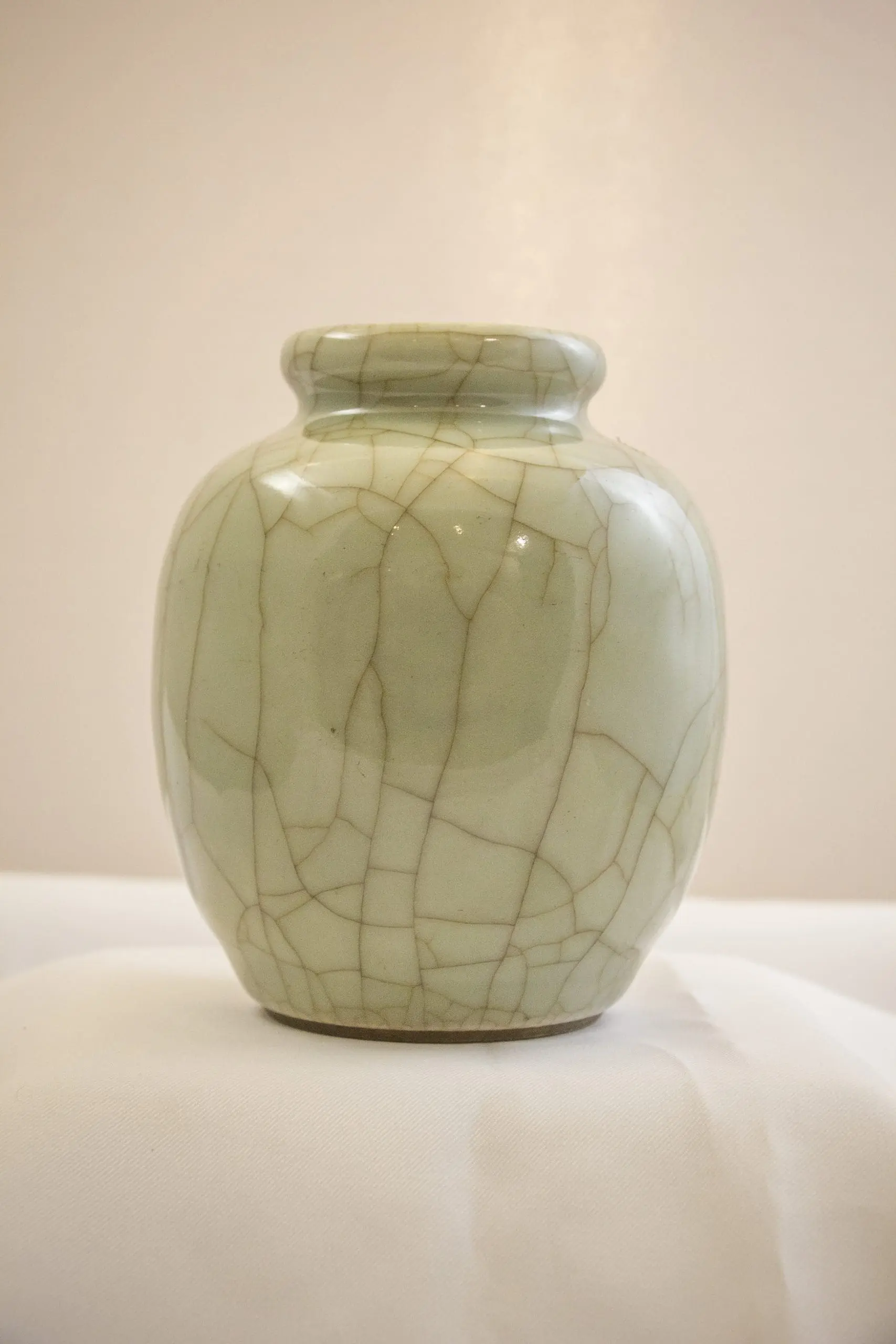 | Description | Small Crackle Celadon (Ge ware) jarlet with rolled lip. Celadon glaze was popular during the Song Dynasty, with the crackle patterns evoking desirable aesthetics as it ages. |