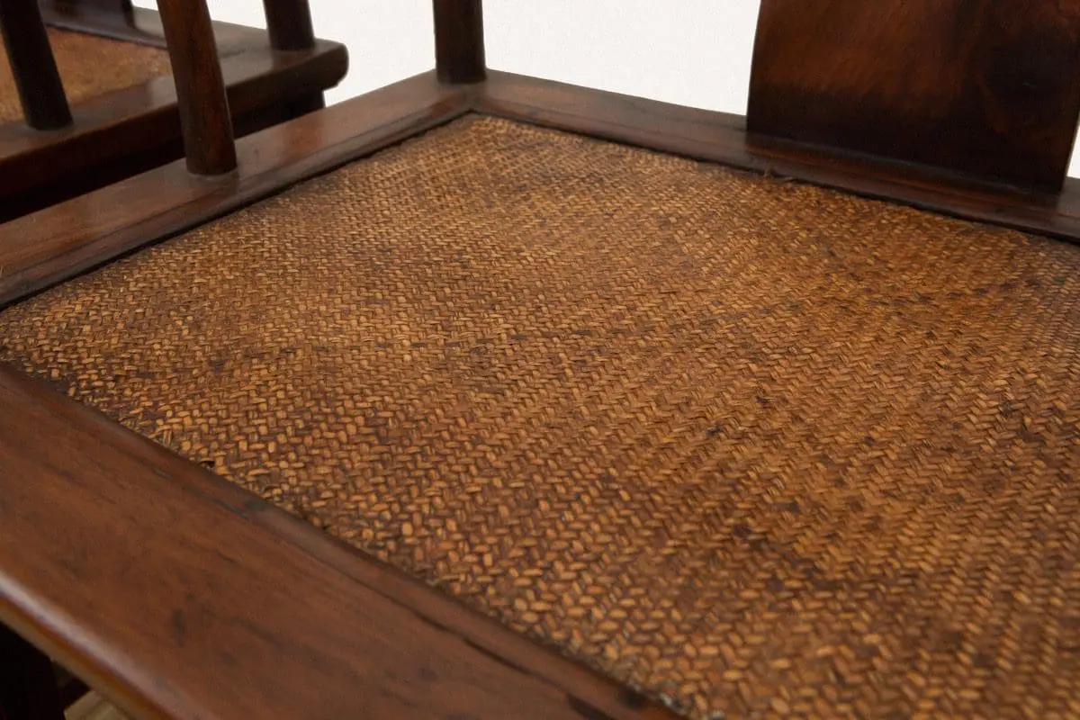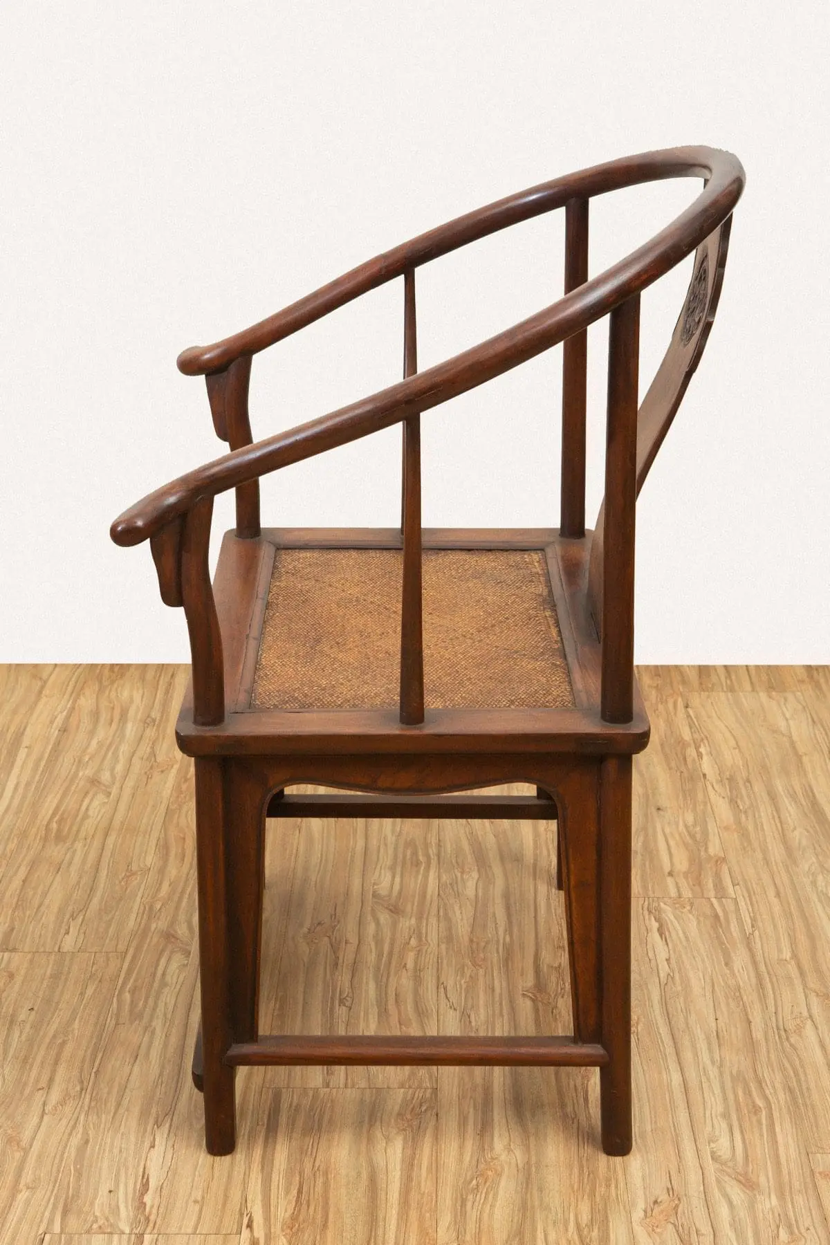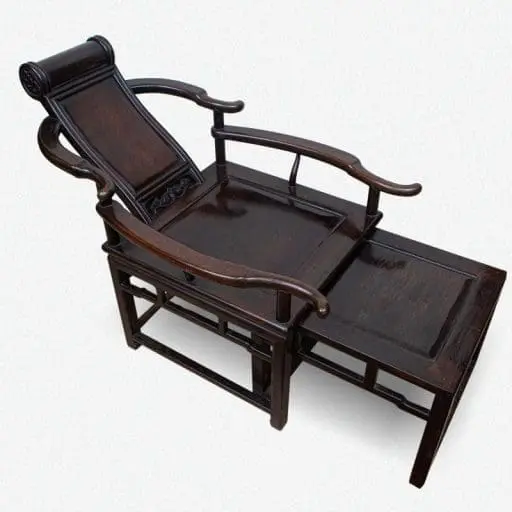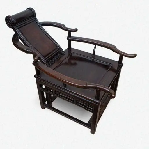| Description | Horseshoe Backed Chairs: A fine pair of horseshoe back chairs, with gently sloped back splats, repousse carvings of two archaic dragons, twirly vines on the front aprons. |