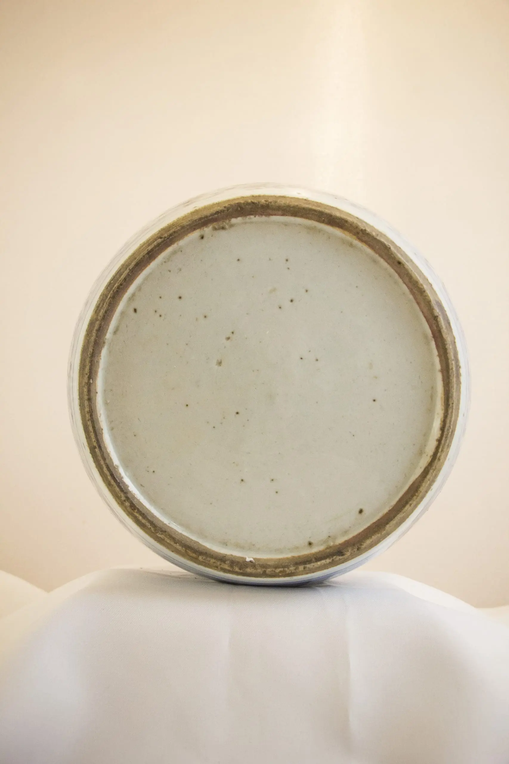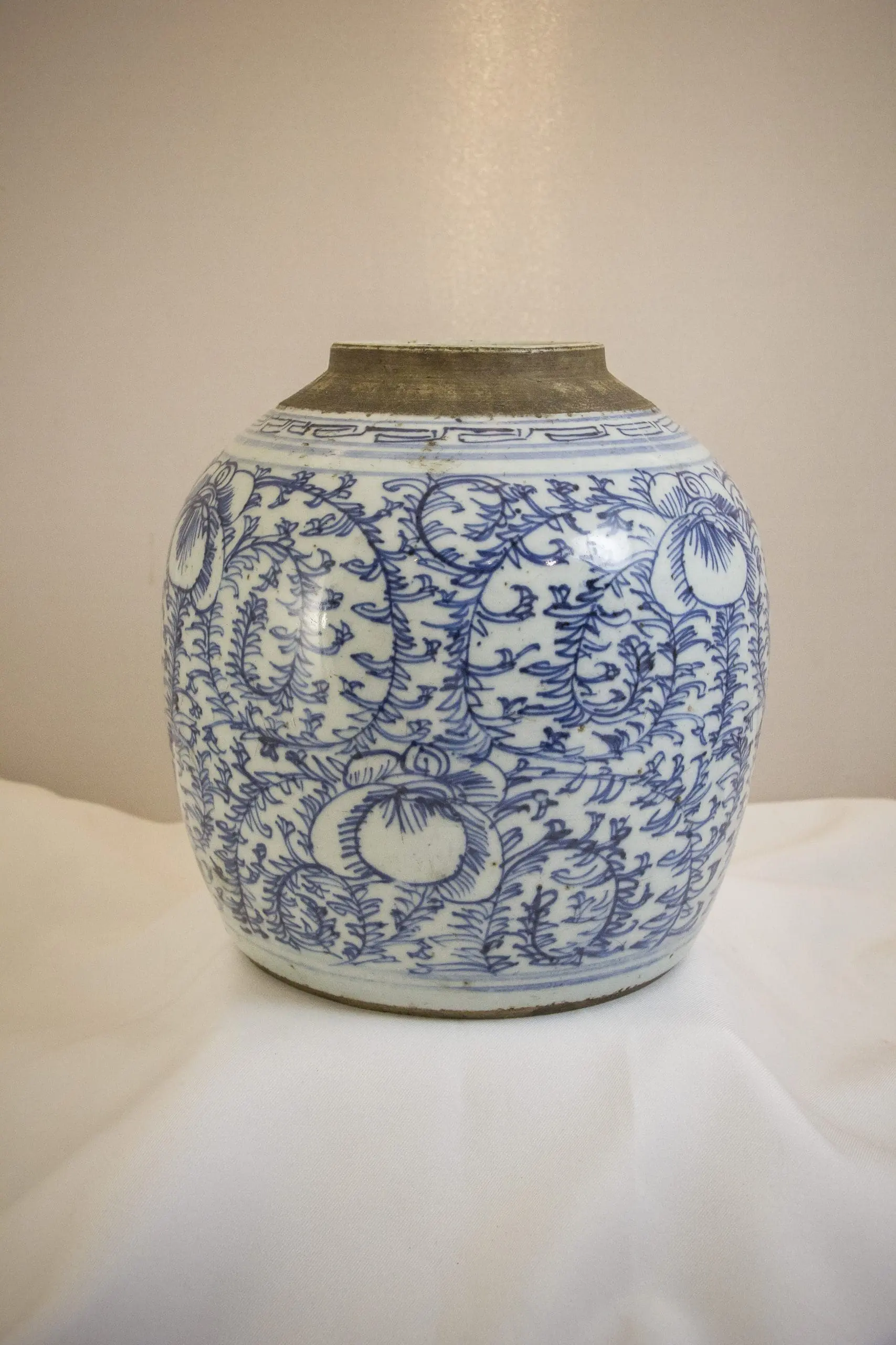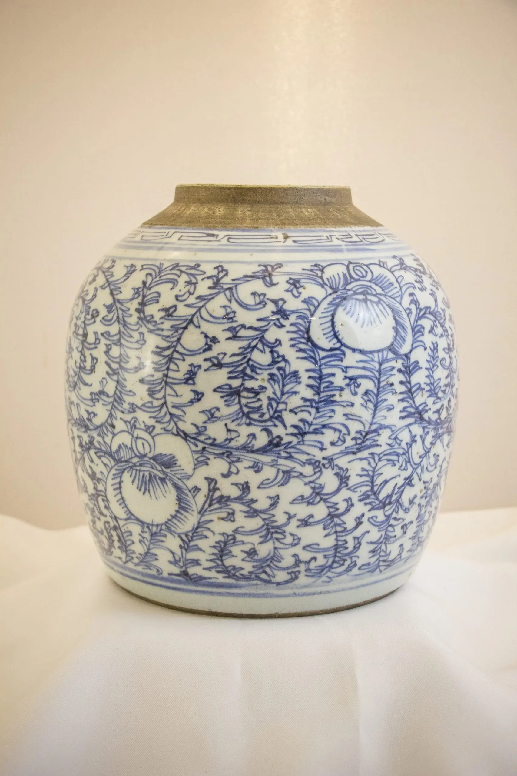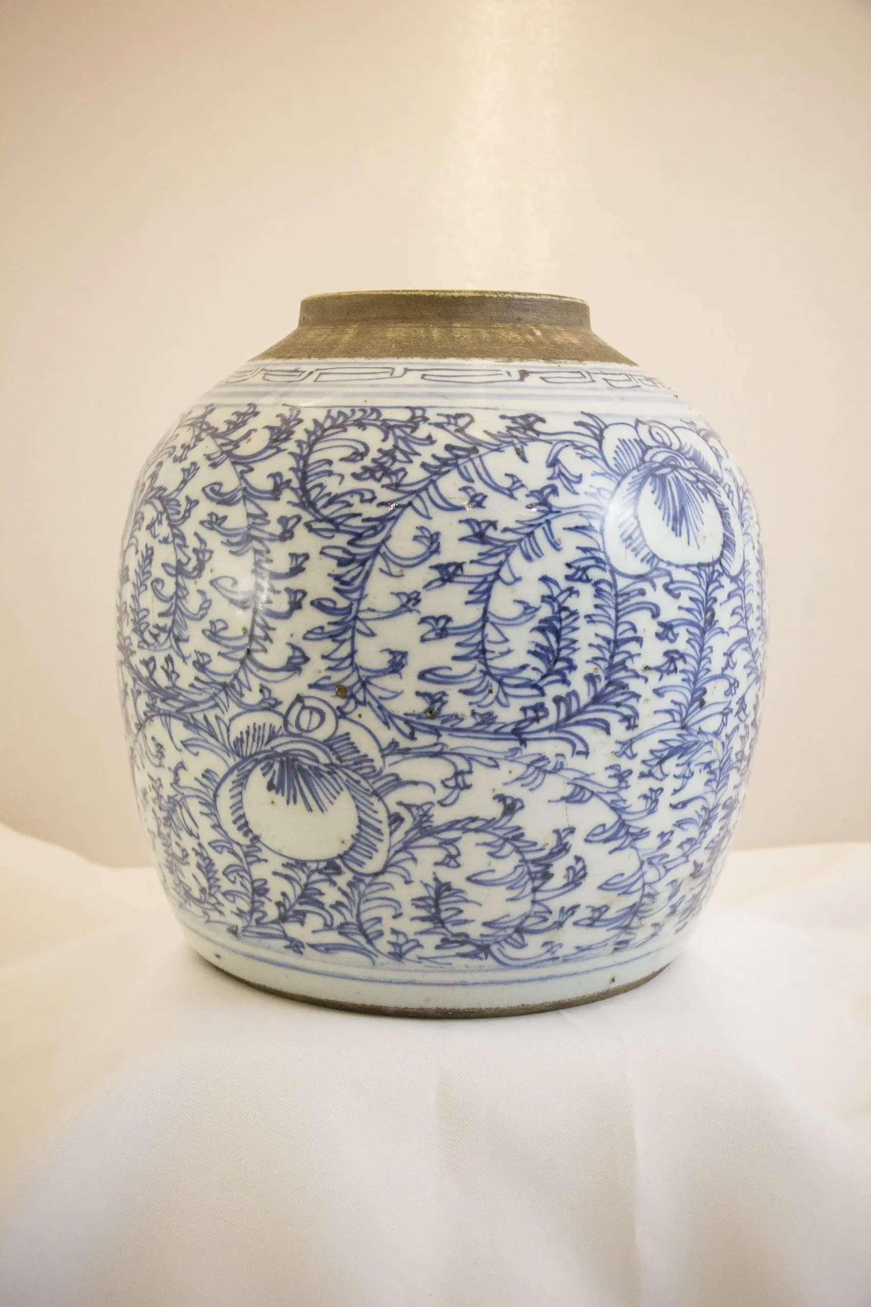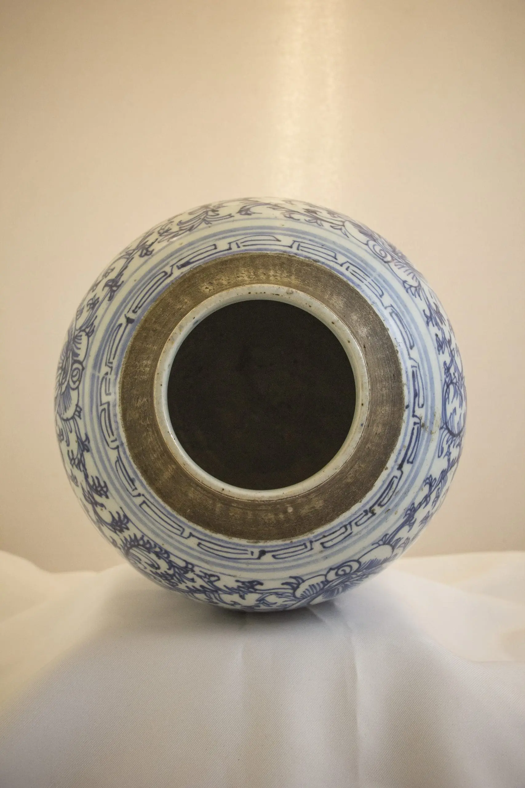 | Description | Blue and white porcelain ginger jar, with lotus flowers and scrolling vines. Ginger jars evolved from regular use to symbols of status during the Qing dynasty. The lotus flowers symbolise integrity and harmony. The blue color is thought to symbolize heaven, and the white symbolizes purity. |