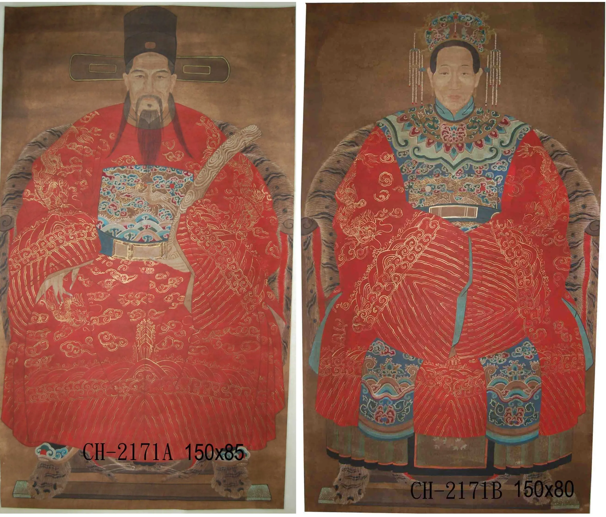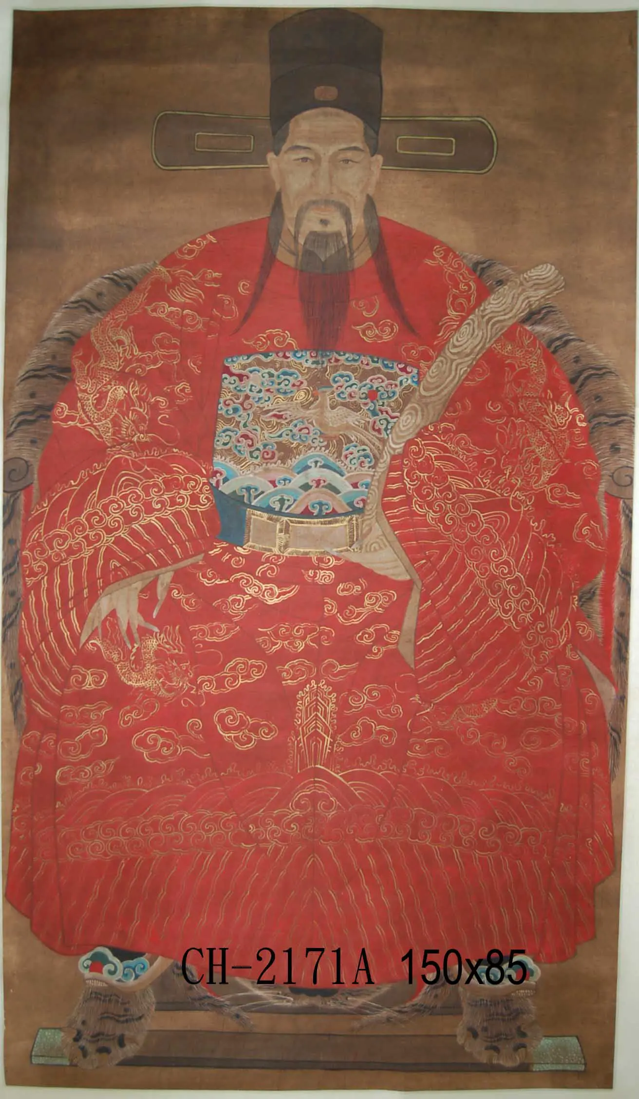 | Description | Qing Dynasty portrait: high-ranking official in red court robe, gold embroidery. Stern gaze and formal posture convey authority. Black hat and handheld object denote status. Simple background emphasizes his dignity and lineage. |