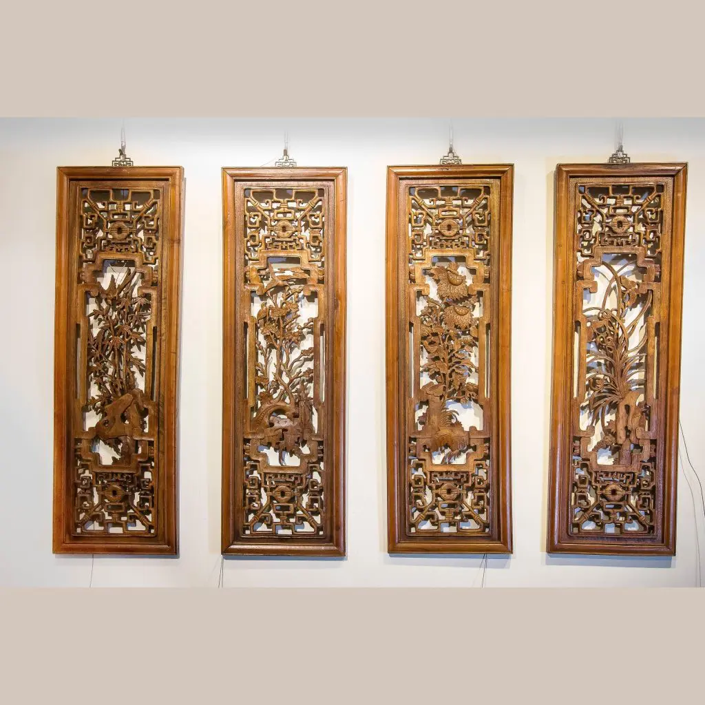 | Description | A set of the four seasons panels, each with pierced carvings of winter, summer,, spring, and fall carvings |