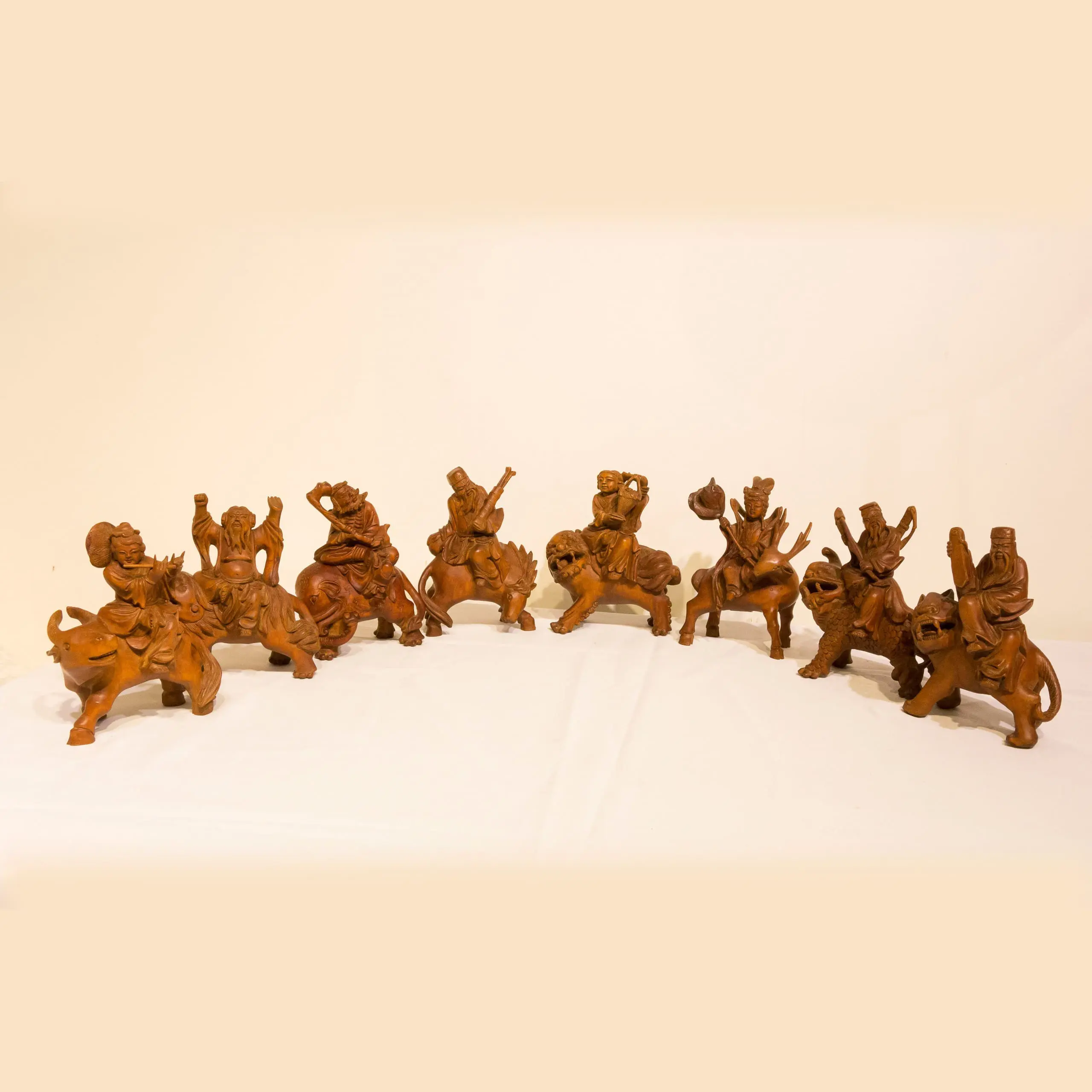 | Description | A finely carved set of 8 immortals riding various auspicious animals. |