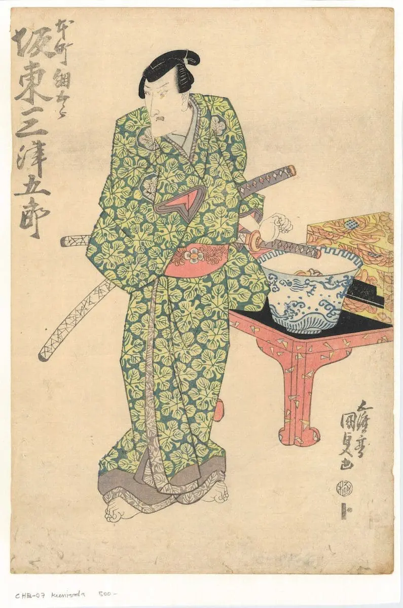 | Description | Authentic Japanese woodblock print or UKIYO-E entitled "Honcho Aburaya Gorobei". Artist: Utagawa Kunisada |