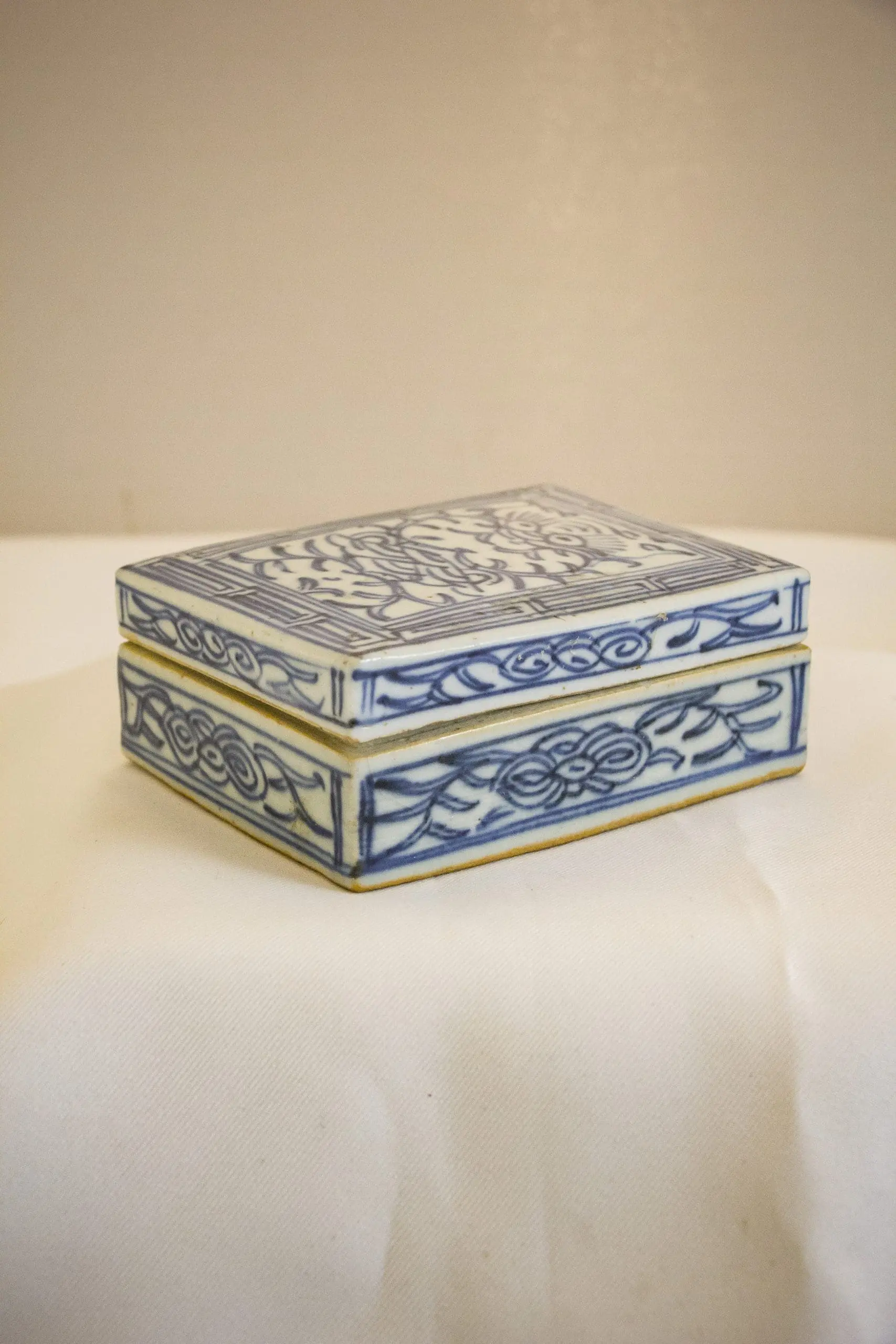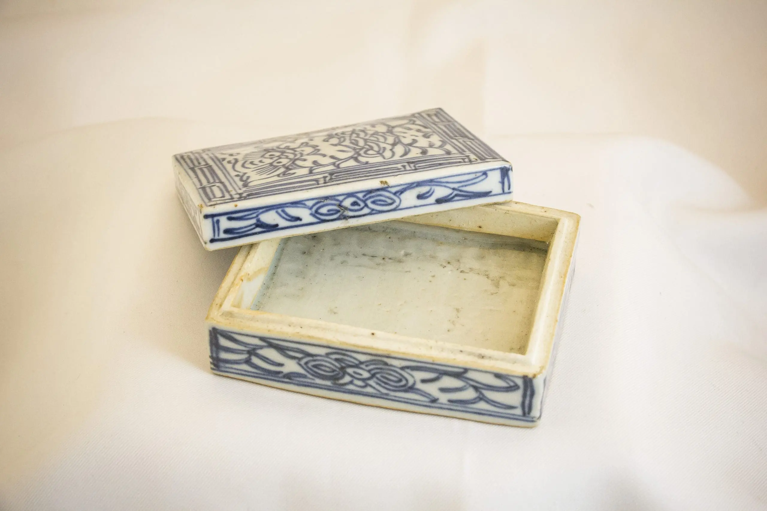 | Description | Rectangular ink box painted in blue and white lotus. The lotus flowers symbolise integrity and harmony. The blue color is thought to symbolize heaven, and the white symbolizes purity. Seal paste boxes were used by scholars to hold vermillion seal paste or ink. |