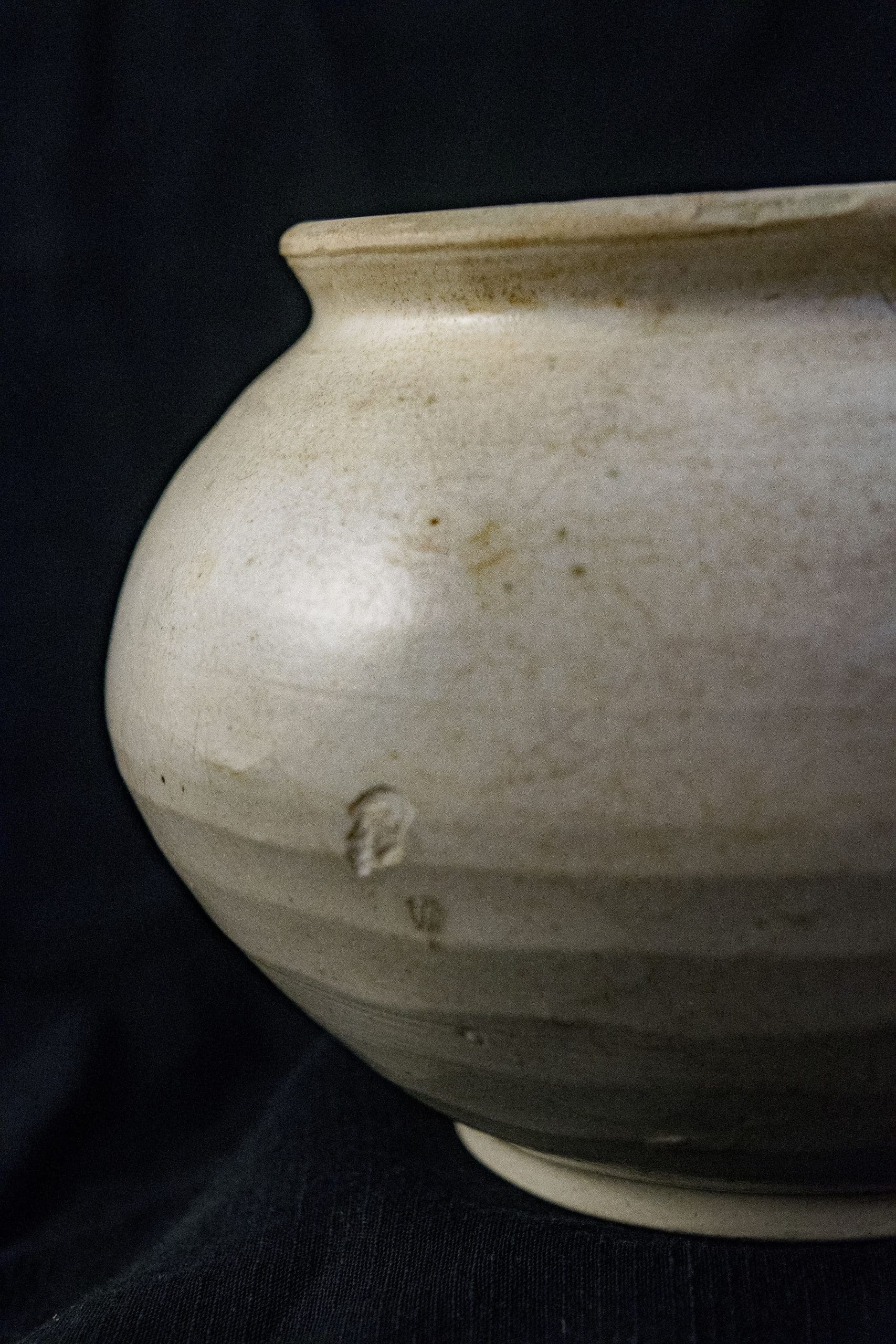 | Description | Globular white-glazed jar from the Yi Dynasty, Korea. The rounded body gently tapers to a short foot, with a simple everted rim. |