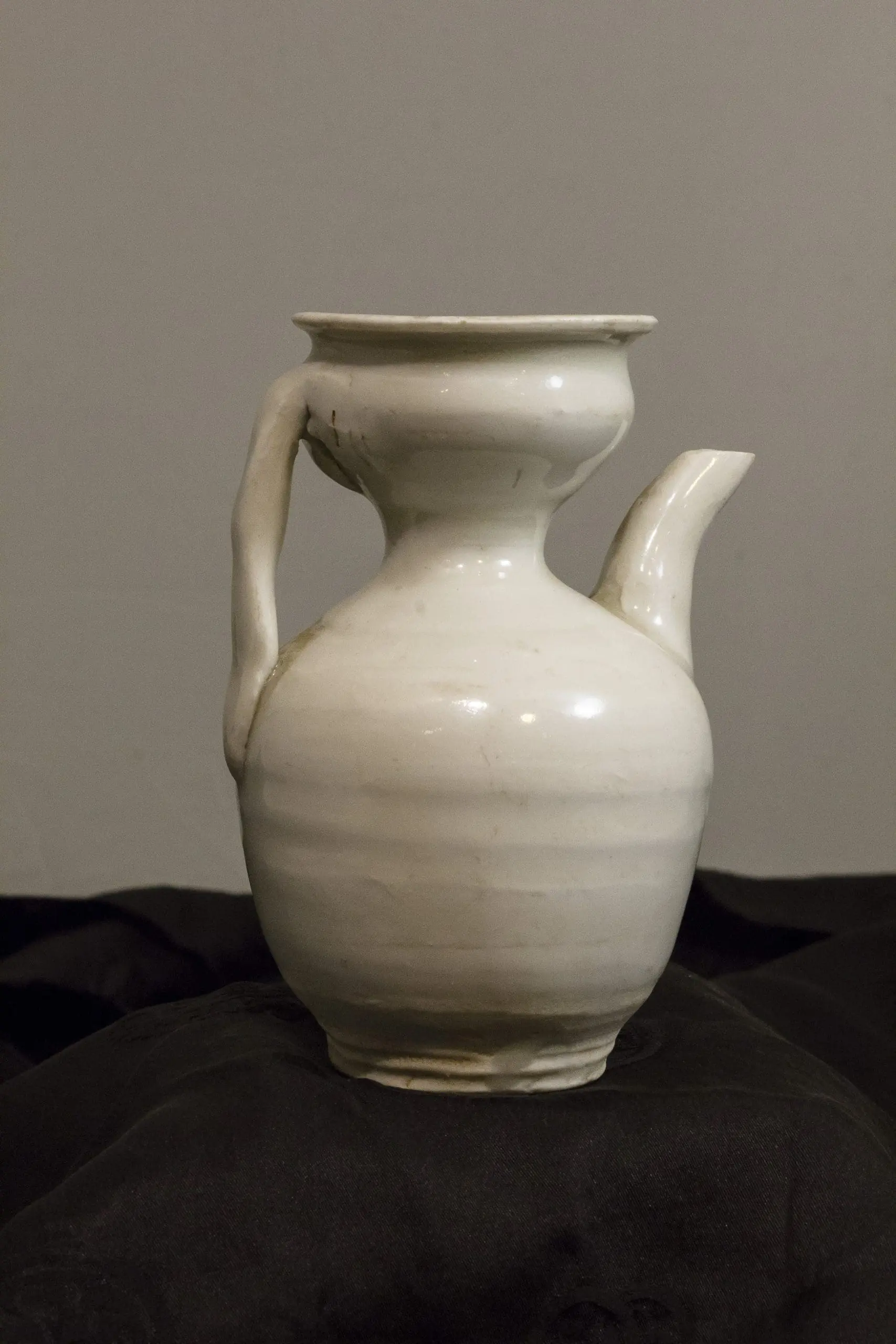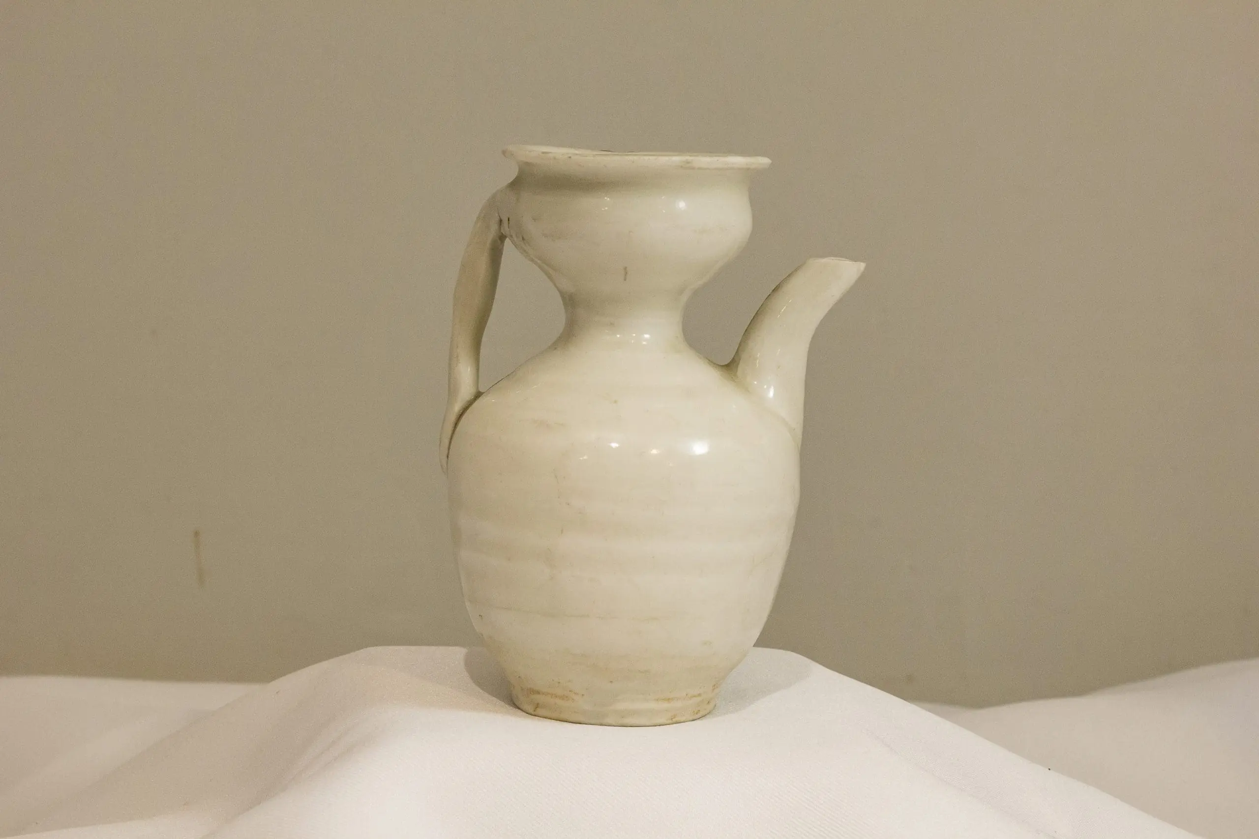 | Description | White glazed oil jar with spout. |