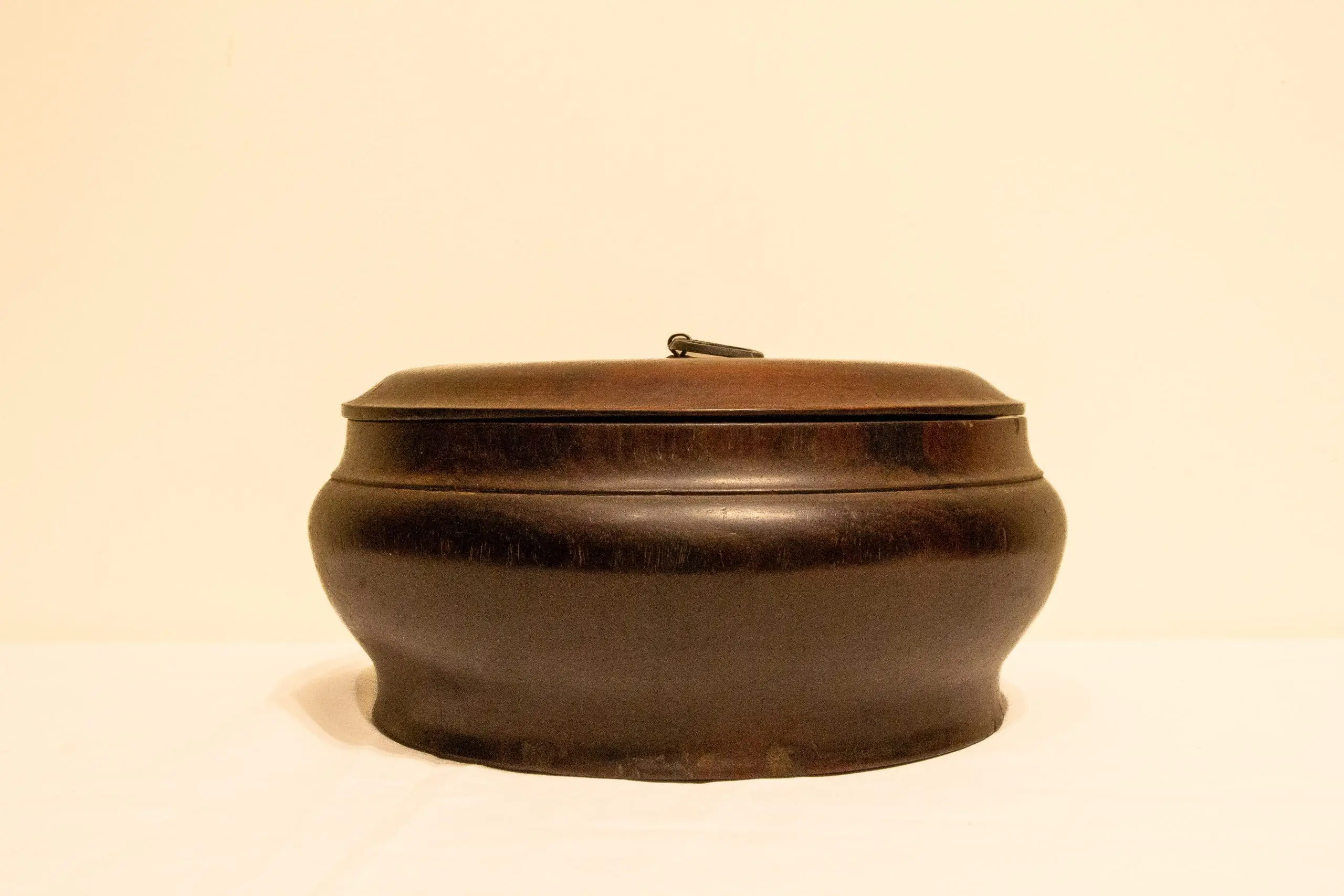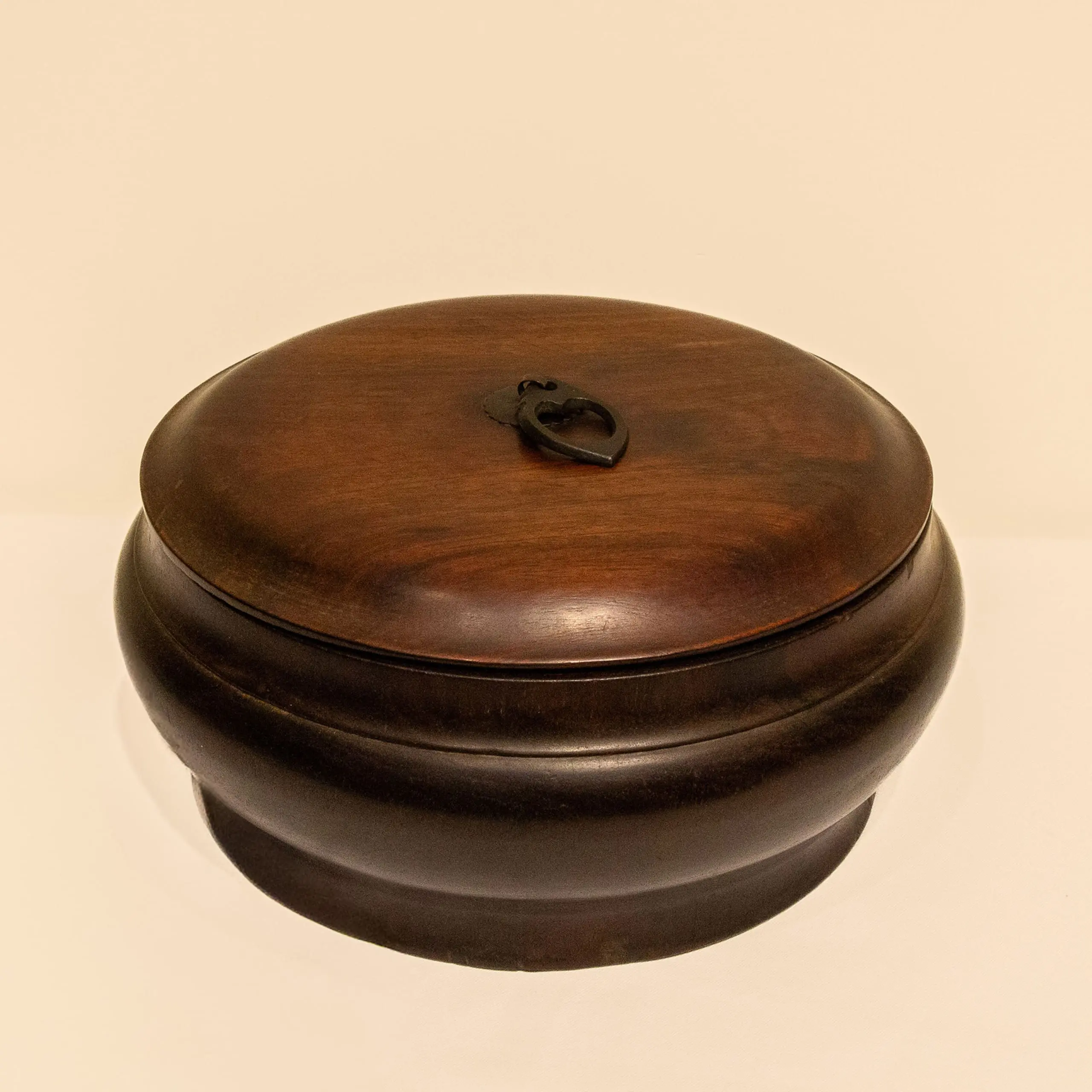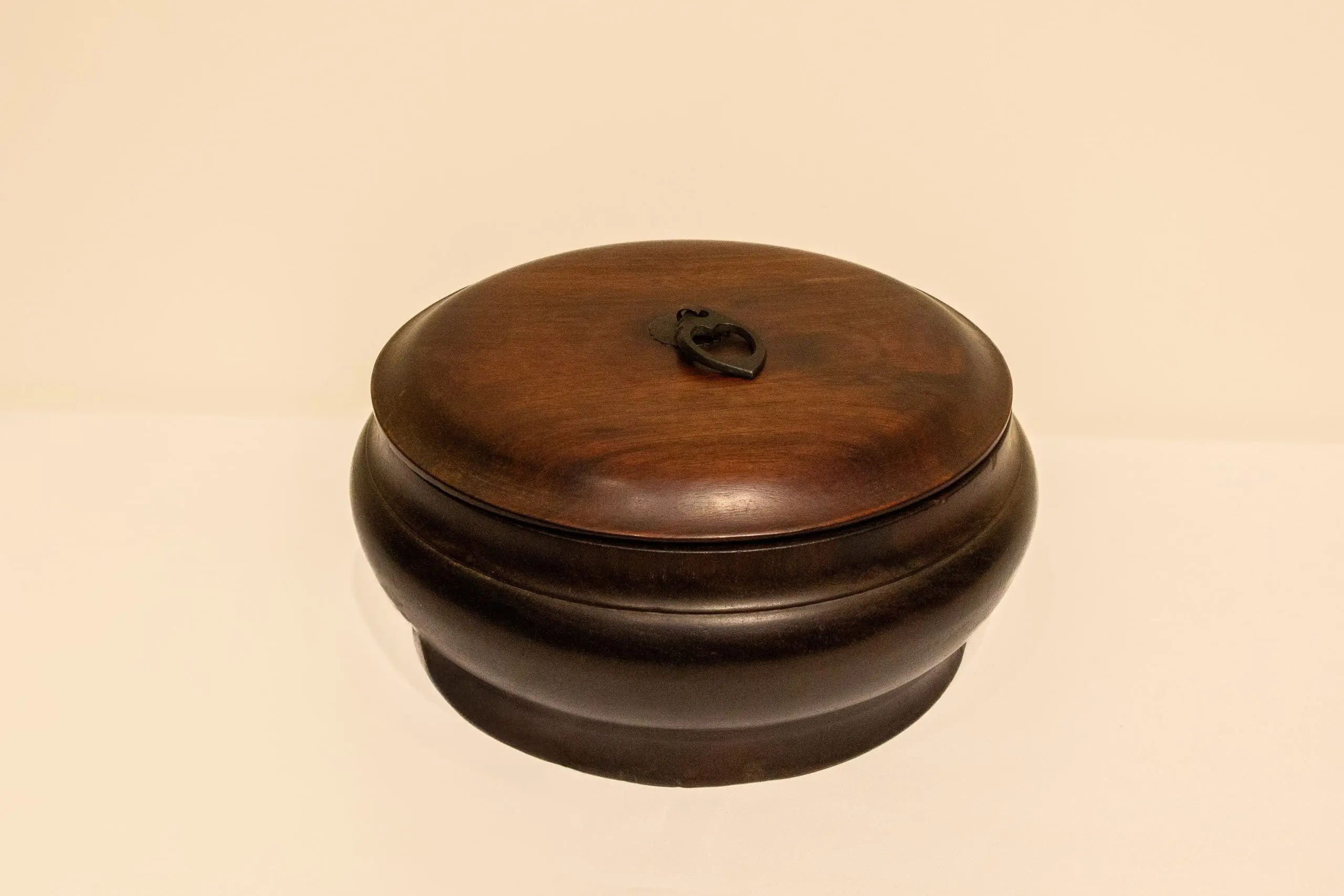 | Description | This elegant round covered box is finely crafted from richly figured Huanghuali wood, its softly domed lid fitted with a simple iron pull. |