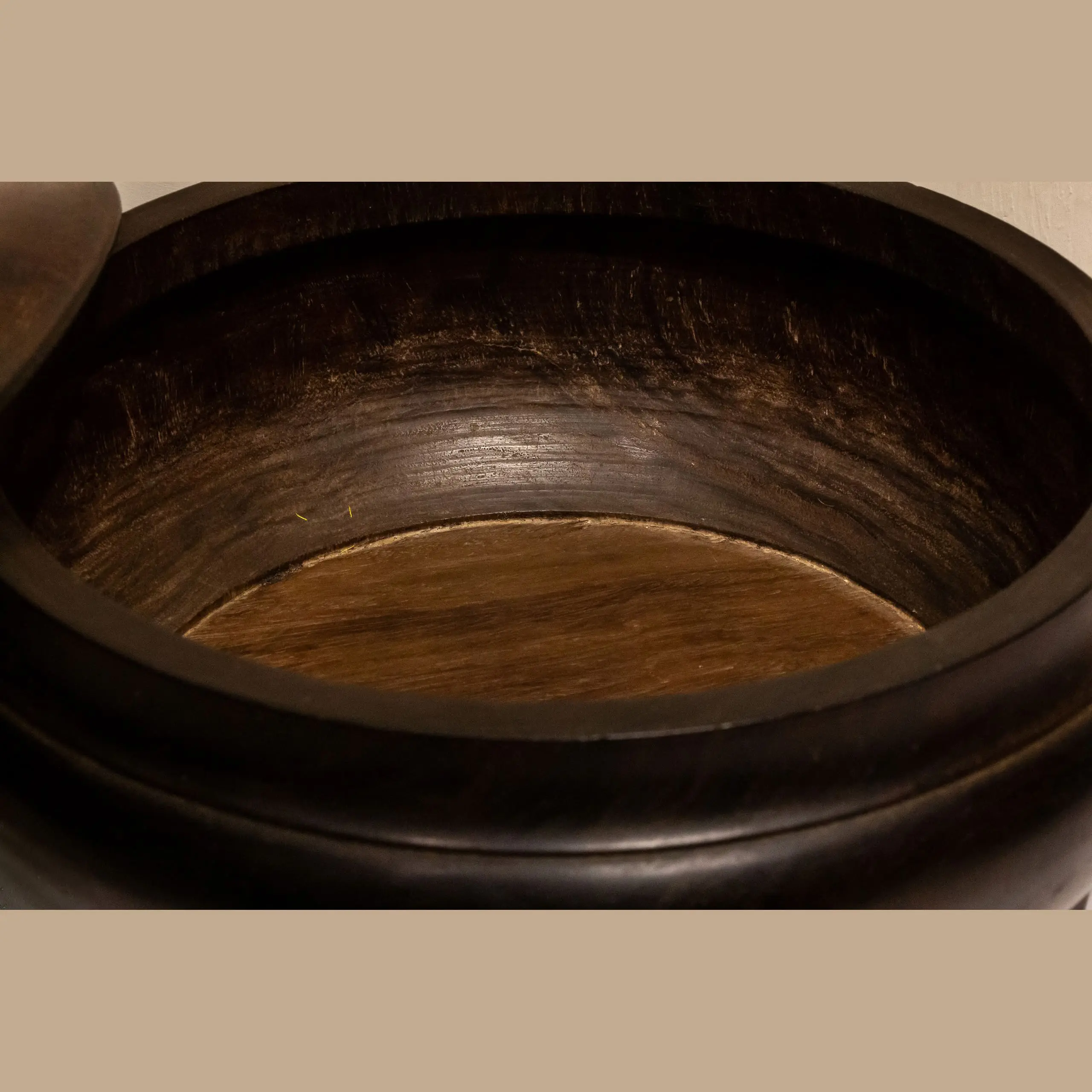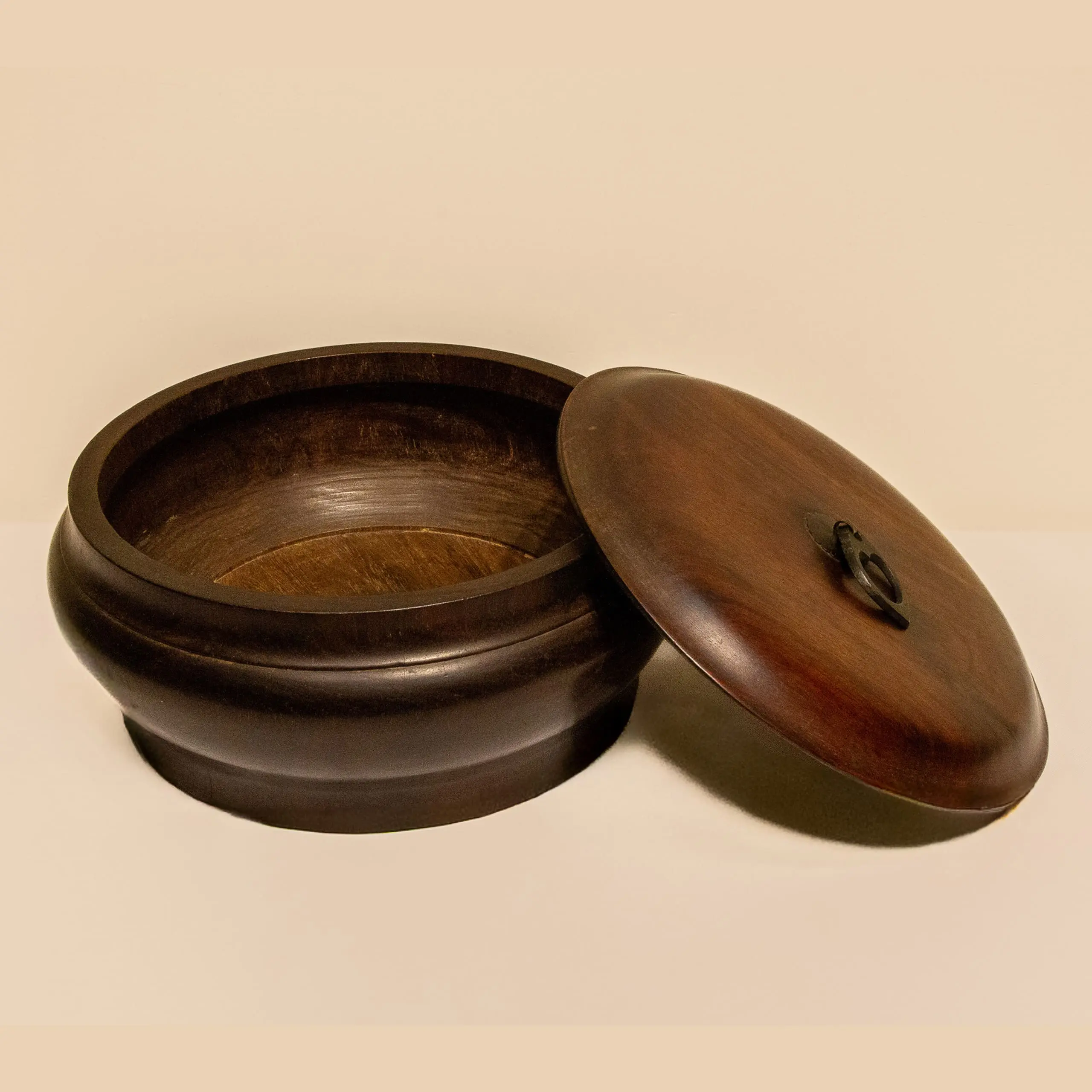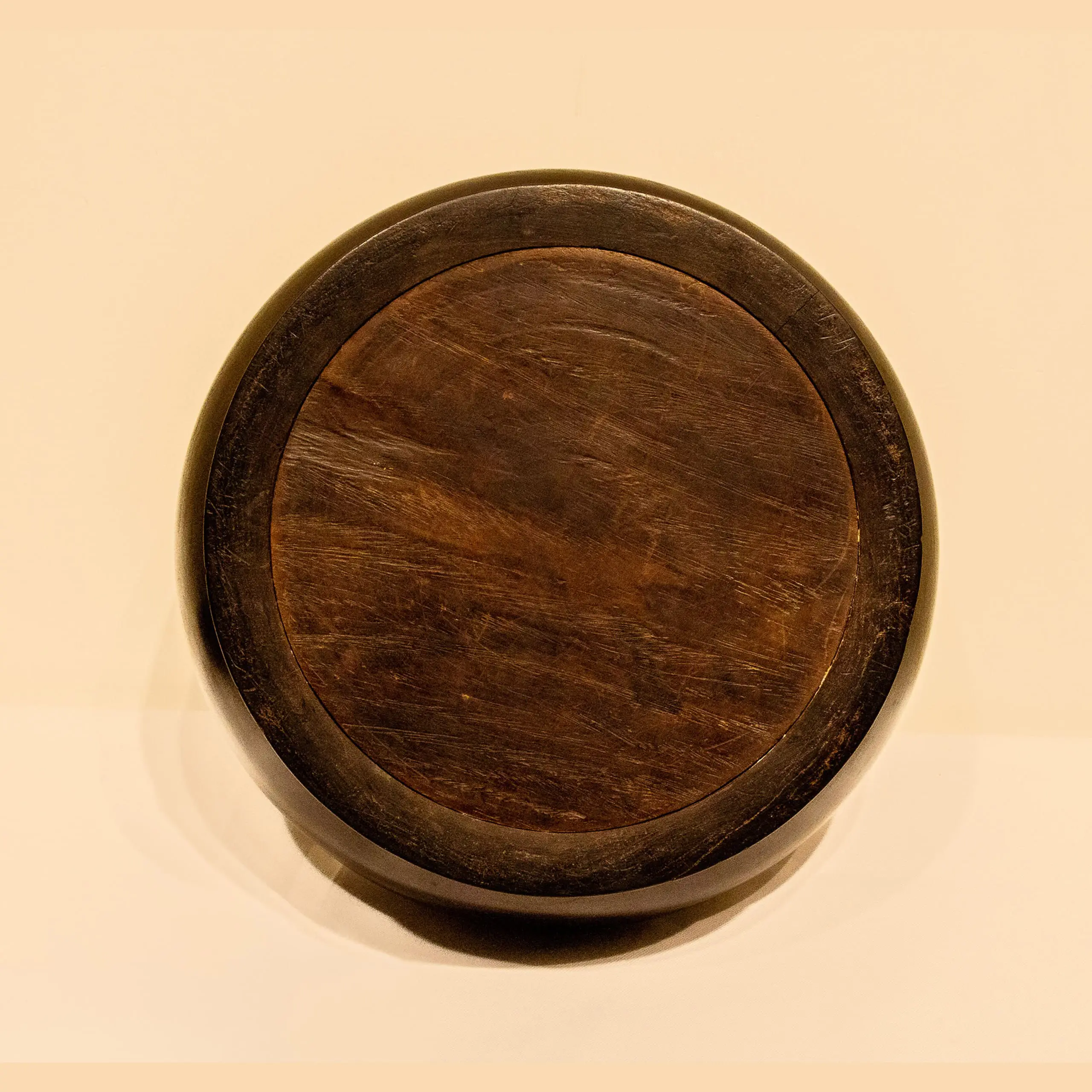 | Description | This elegant round covered box is finely crafted from richly figured Huanghuali wood, its softly domed lid fitted with a simple iron pull. |