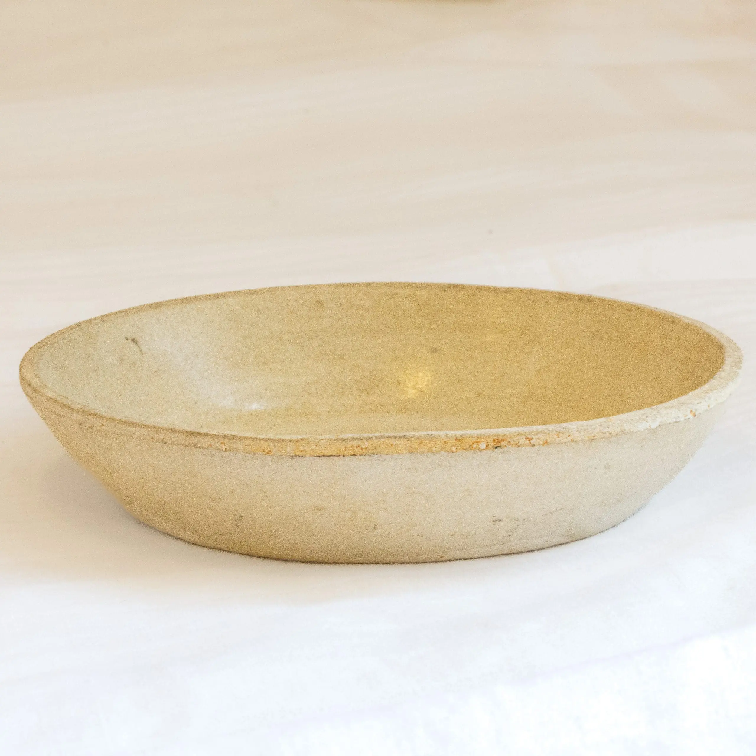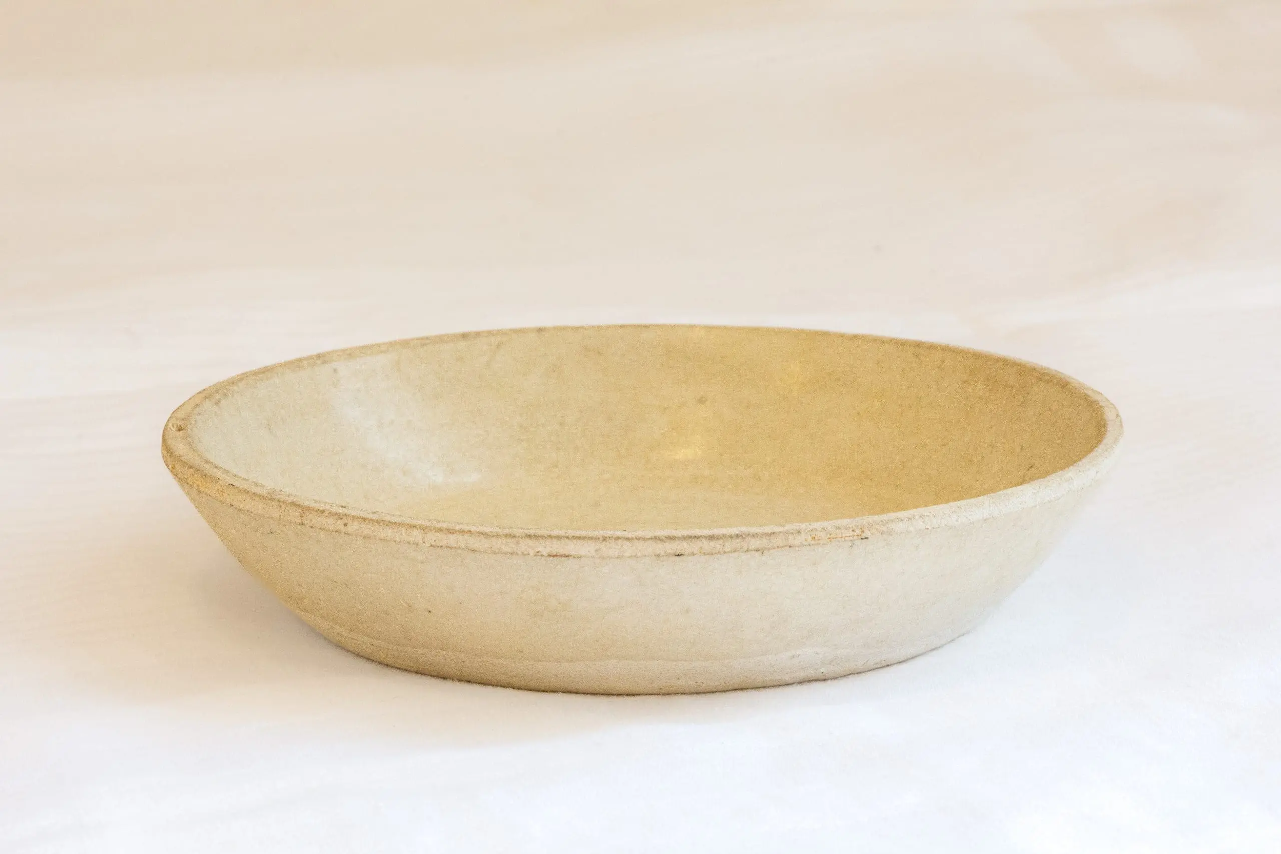 | Description | Song dynasty white-glazed bowl of shallow, open form with gently curving sides. The thinly potted body is covered in a soft, translucent glaze pooling slightly toward the center, revealing a warm ivory tone. |