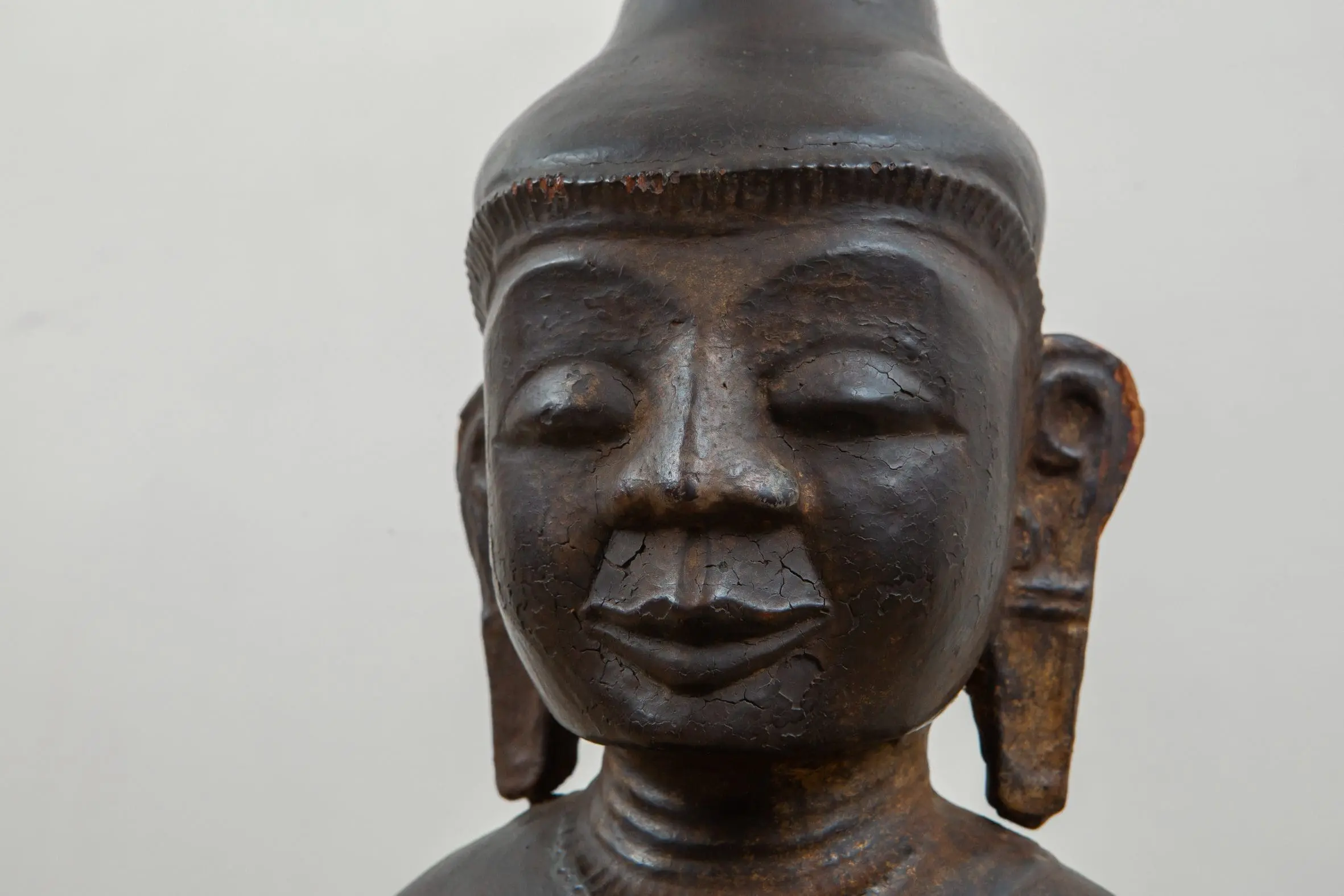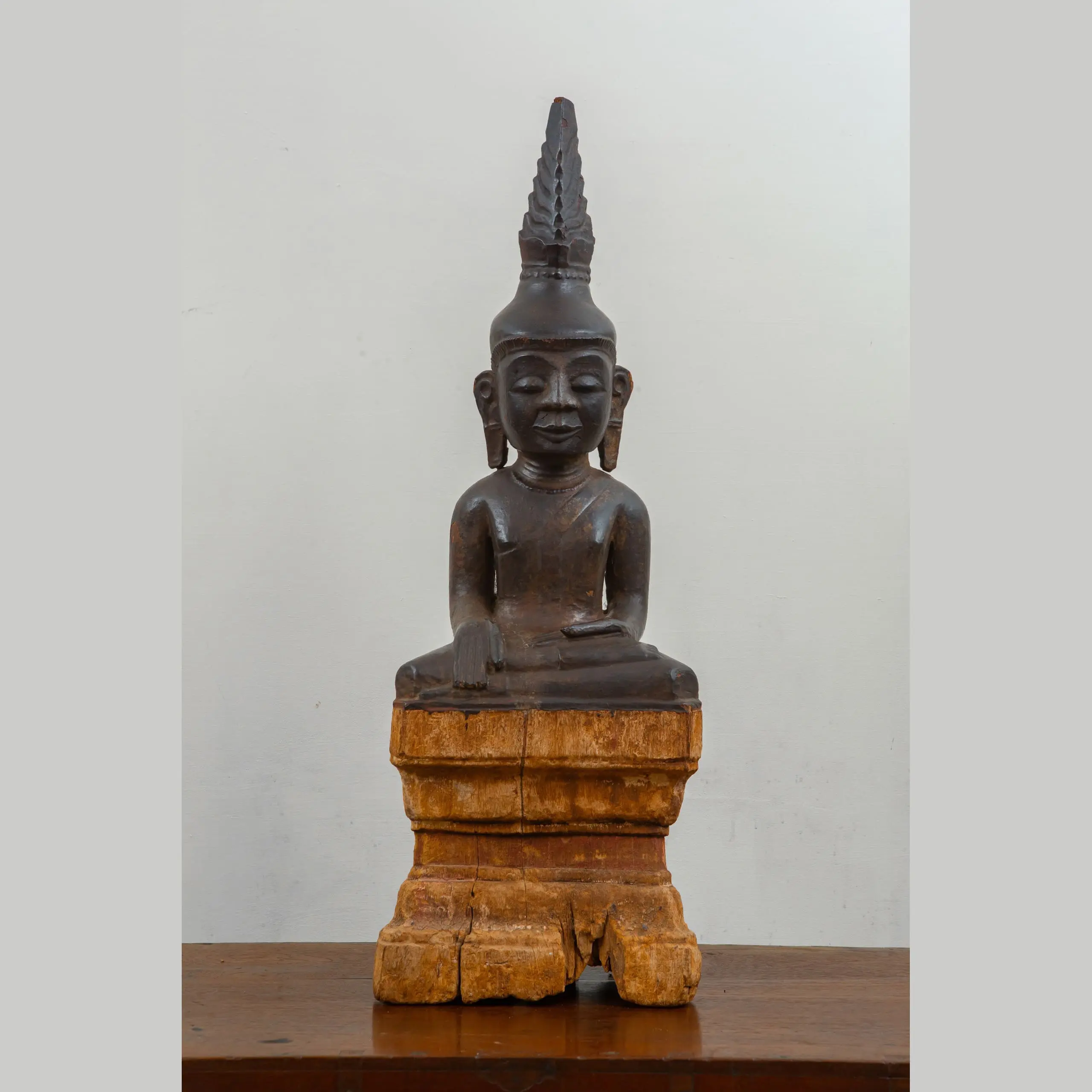 | Description | Large black lacquered Buddha seated on unfinished throne, his hands in a Subduing Mara Mudra, also known as the "conquering evil " mudra, the "calling the earth to witness" mudra, or the "touch the earth" mudra. |