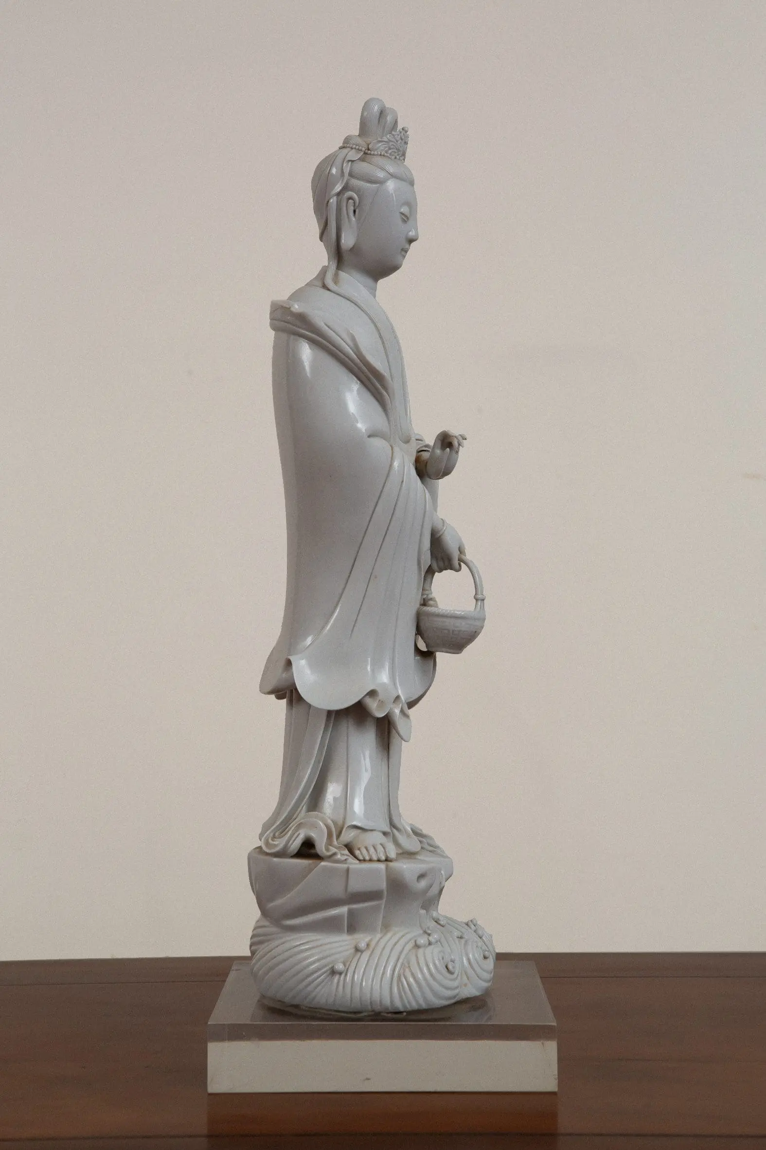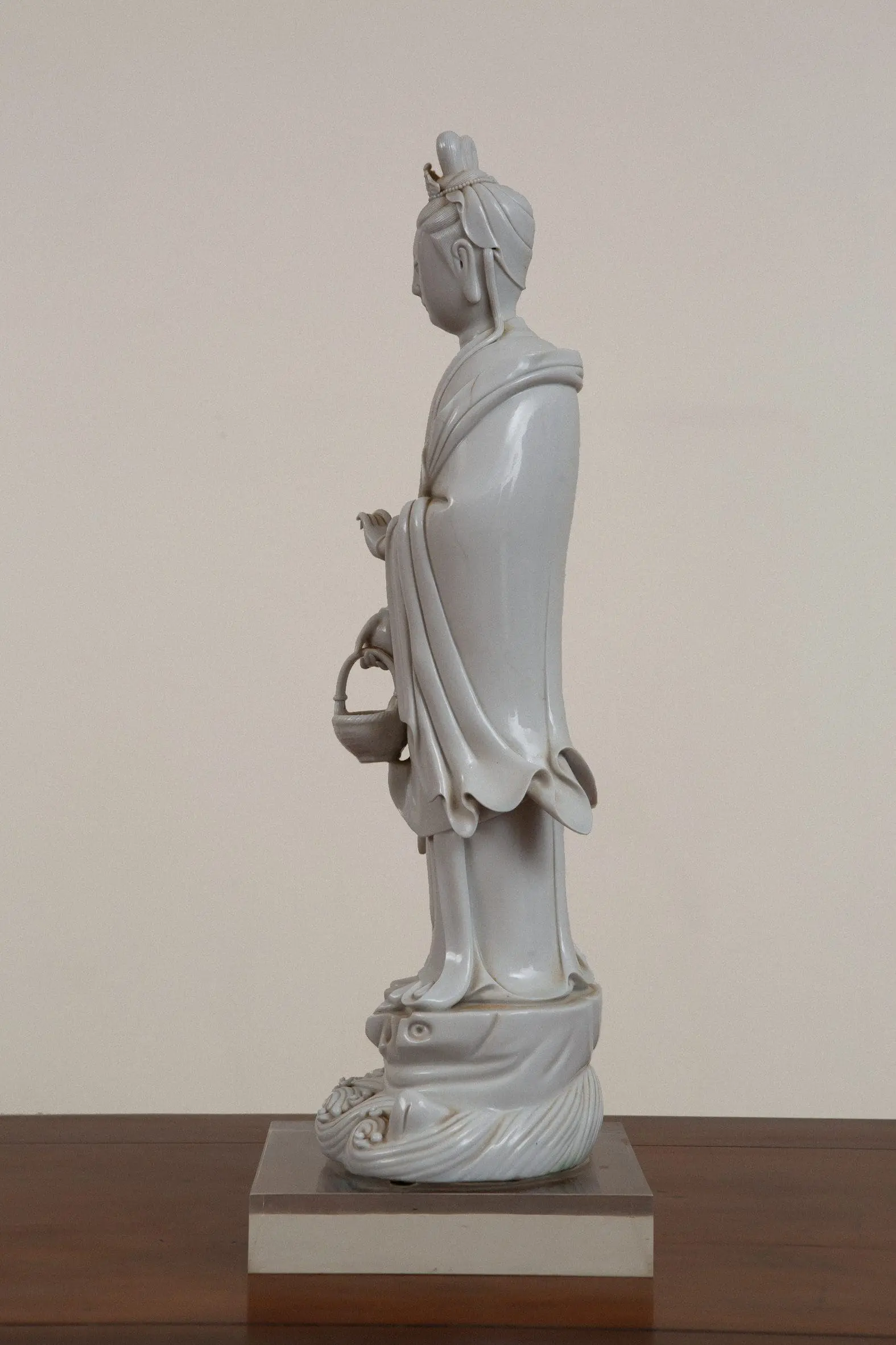 | Description | White De Hua Guan Yin holding a basket. Dehua porcelain, more traditionally known in the West as Blanc de Chine, is a type of white Chinese porcelain, made at Dehua in the Fujian province since the Ming dynasty to the present day. |