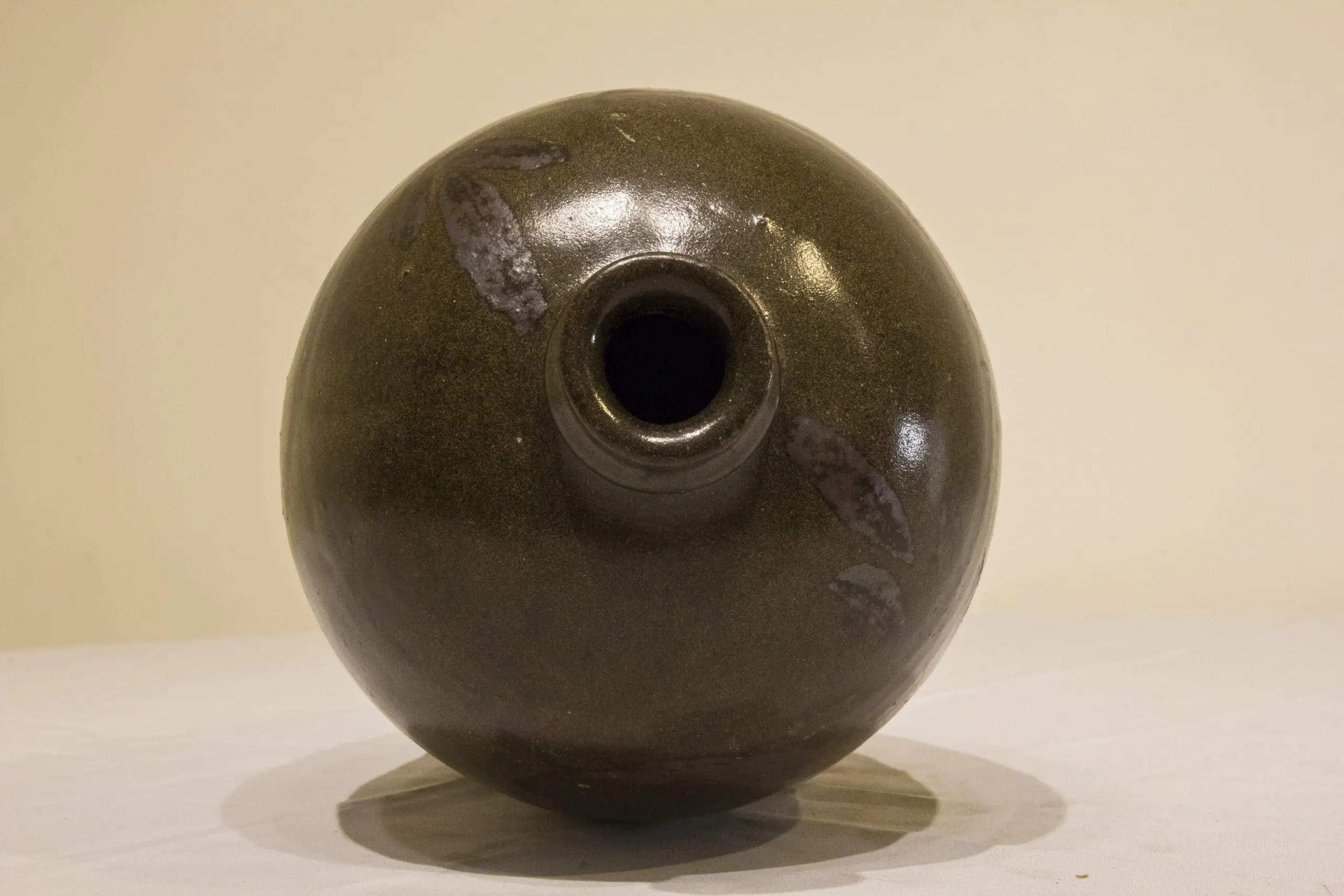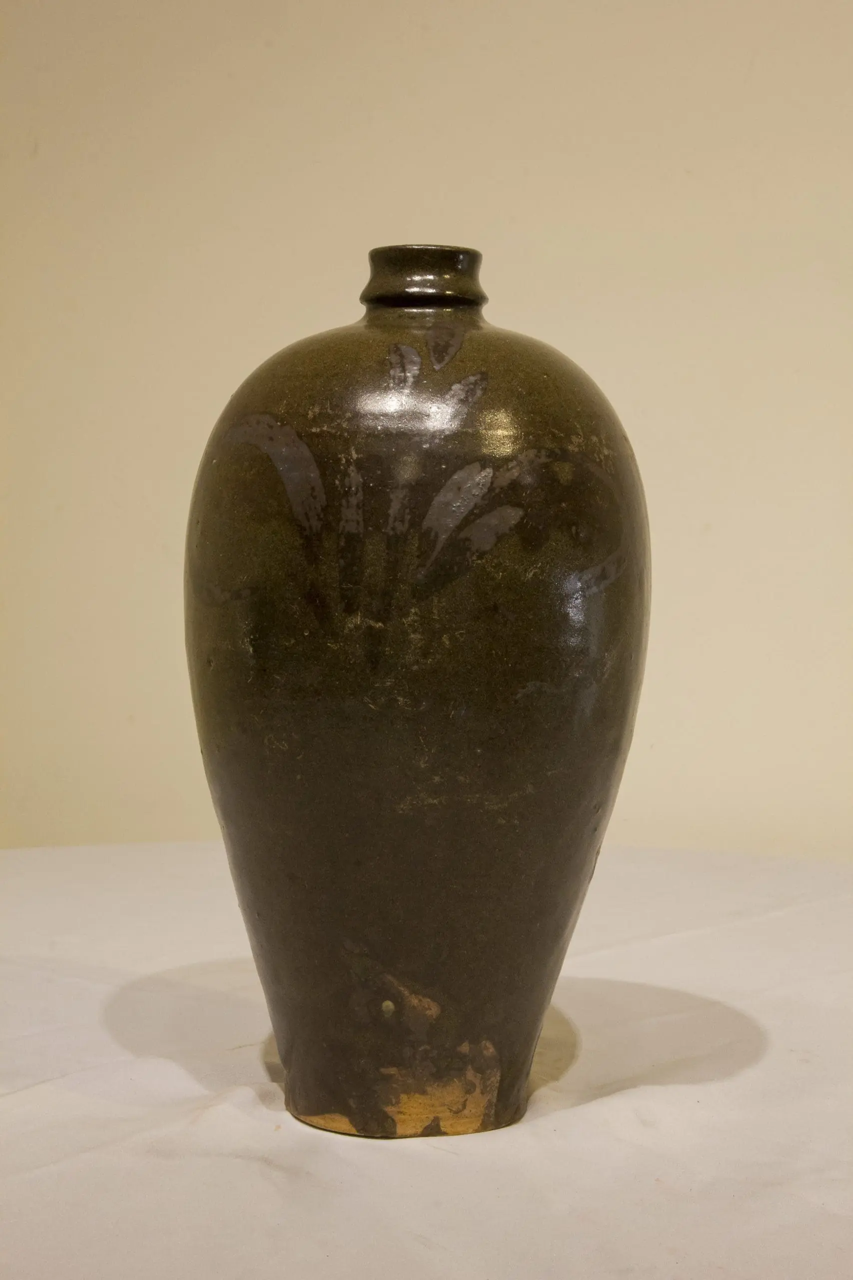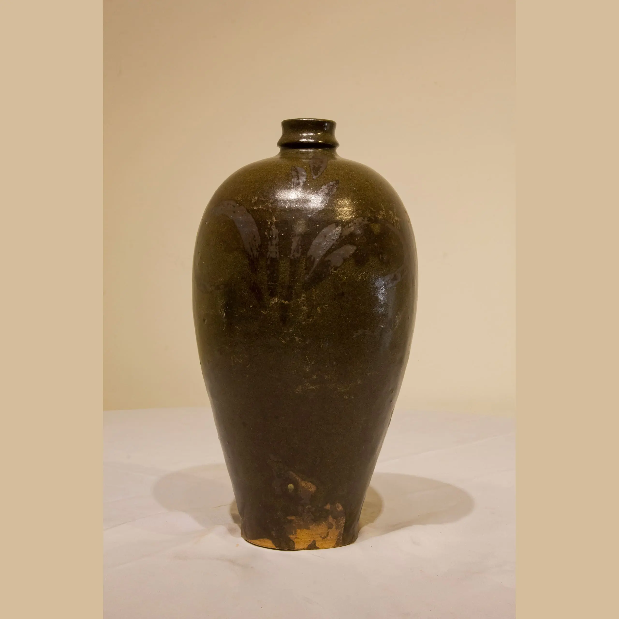| Description | A 29 cm tall Song dynasty brown tea dust-glazed stoneware vase with meiping form: rounded body, ringed waist, short neck and slightly flared lip. Lustrous dark-brown glaze with russet mottling and kiln-aged foot imparts a refined, rustic charm, reflecting Northern Song ceramic aesthetics and high-fired production techniques. |