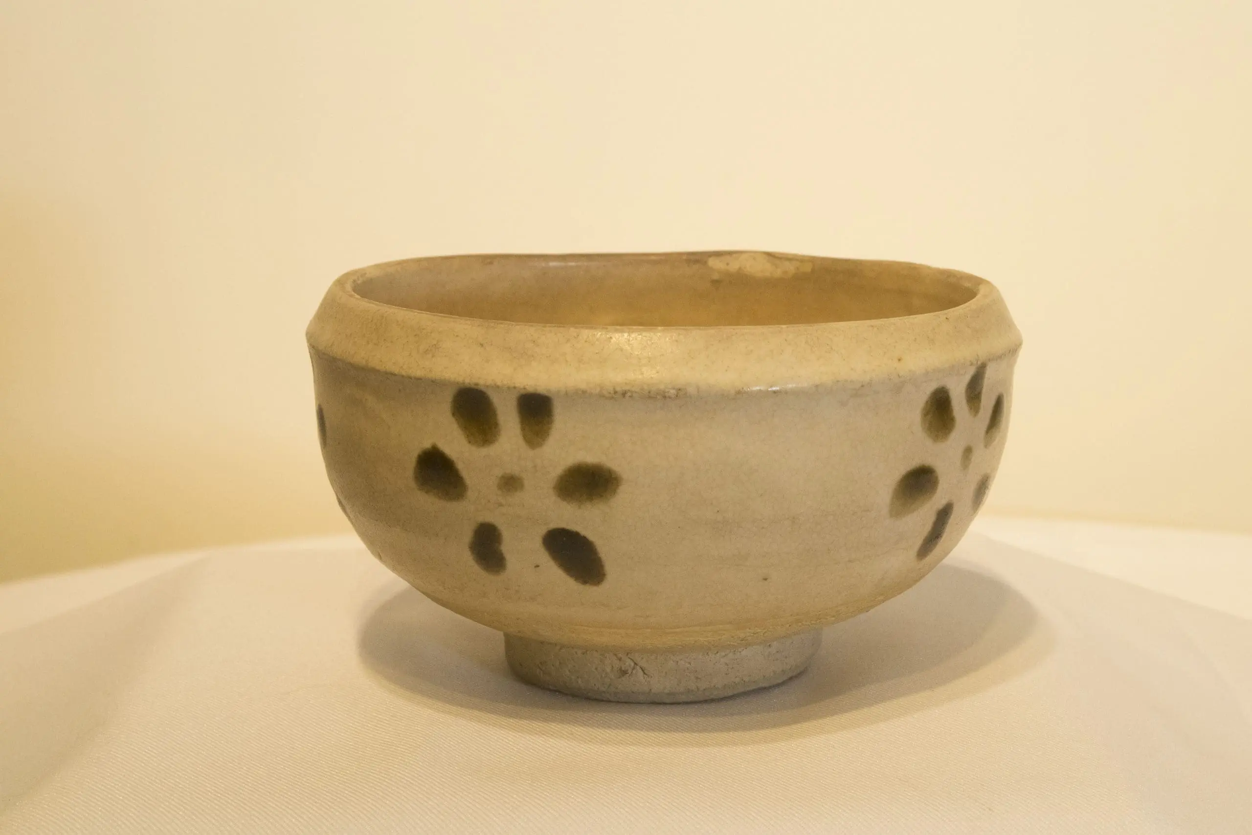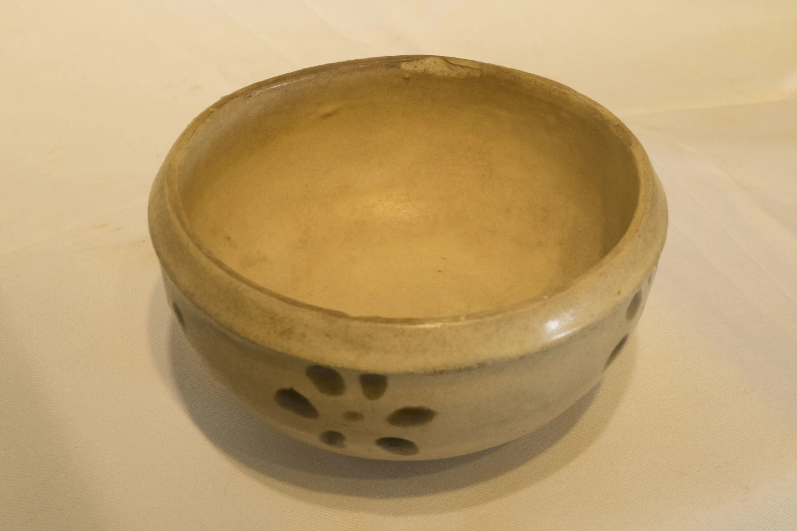 | Description | Cizhou bowl with wide, inverted lip, slightly inverted foot, colorless glaze with brown slip decoration on the exterior of rosettes, each composed of seven dots. |