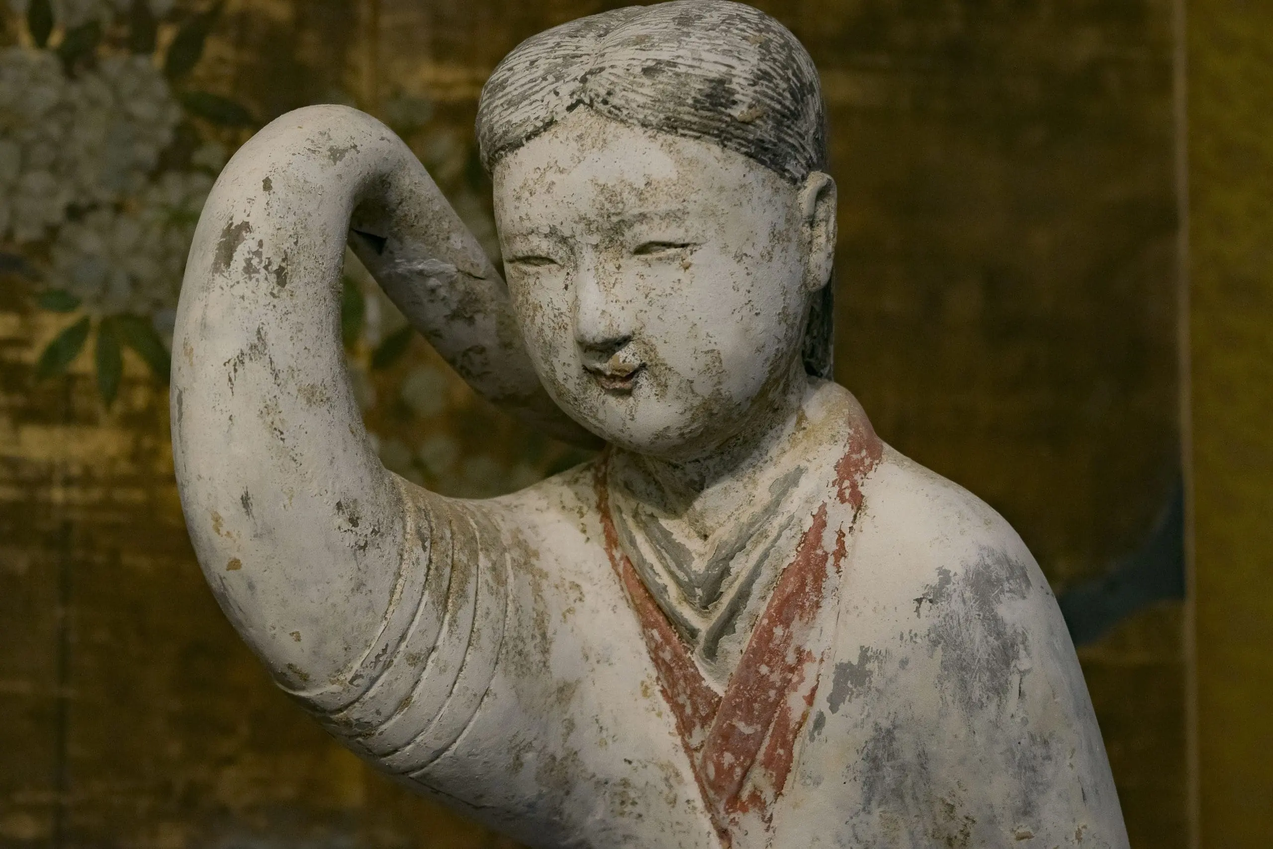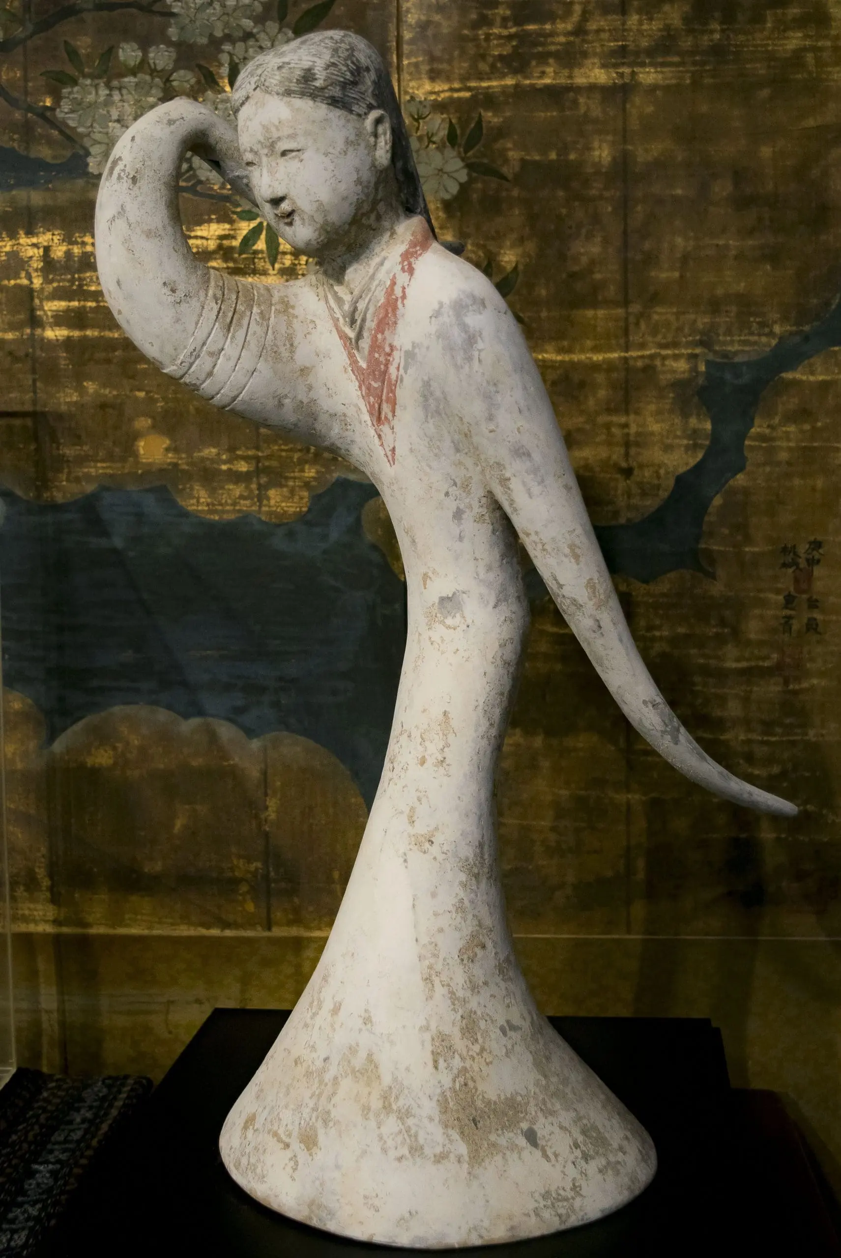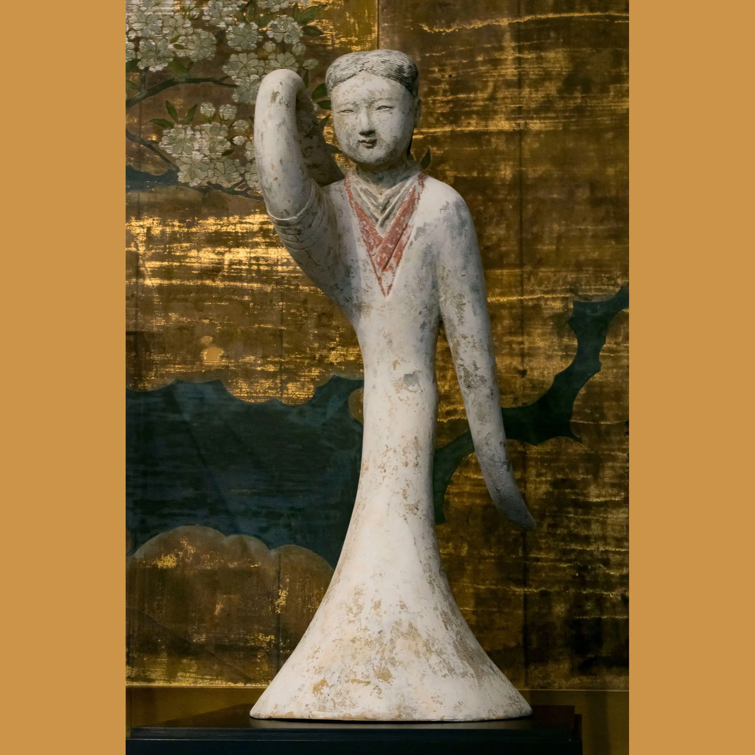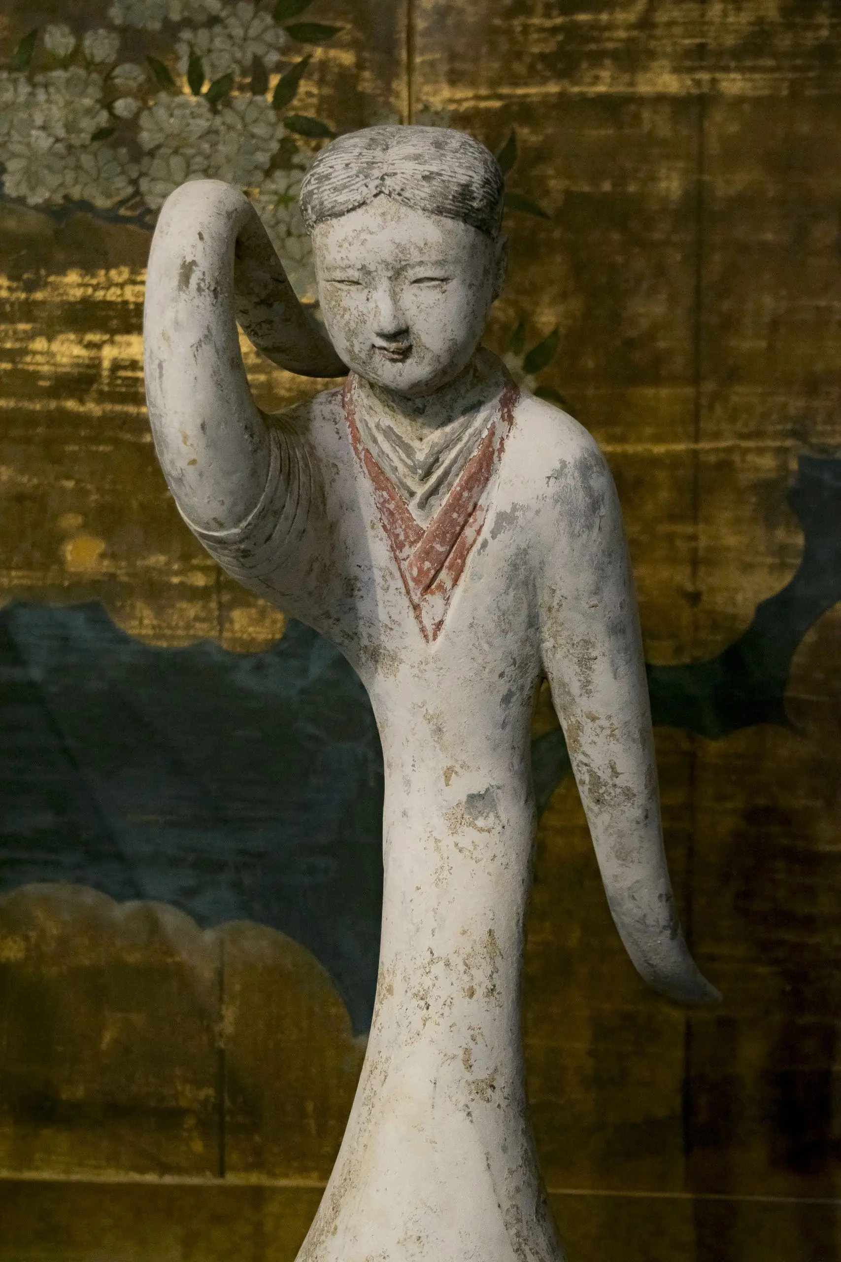 | Description | GRACEFUL DANCER: A painted pottery figure of a graceful dancer dressed in a long gown, her hands concealed under long sleeves and bent in a dancing position, traces of red and black pigment. TL Tested |