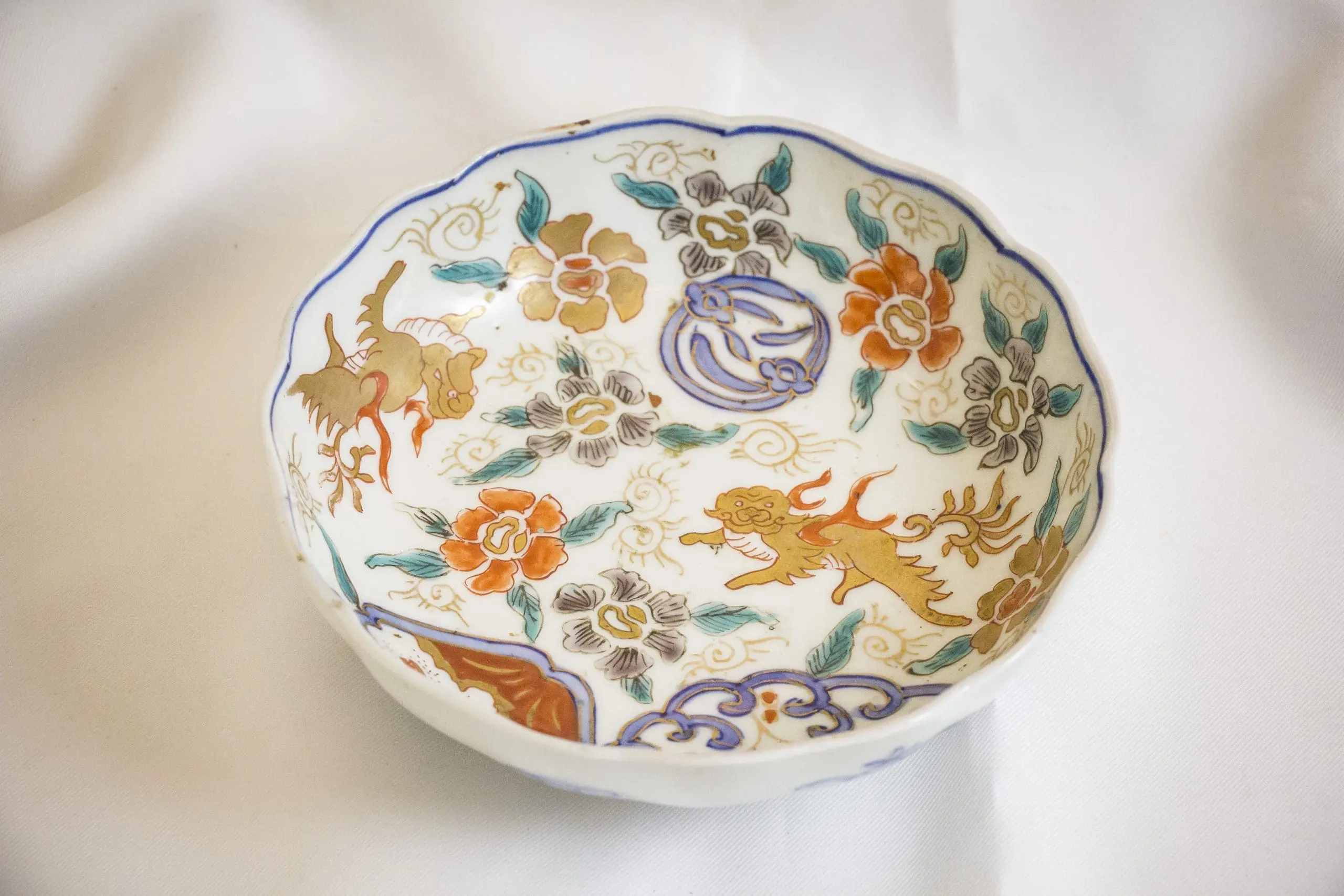 | Description | A small porcelain scalloped bowl with floral and mythical creature designs. The Japanese Imari porcelain style was made in the Arita area of the former Hizen Province, and exported to the port of Imari, which gives the style its name. Imari is known for elegance and delicate craftsmanship. |