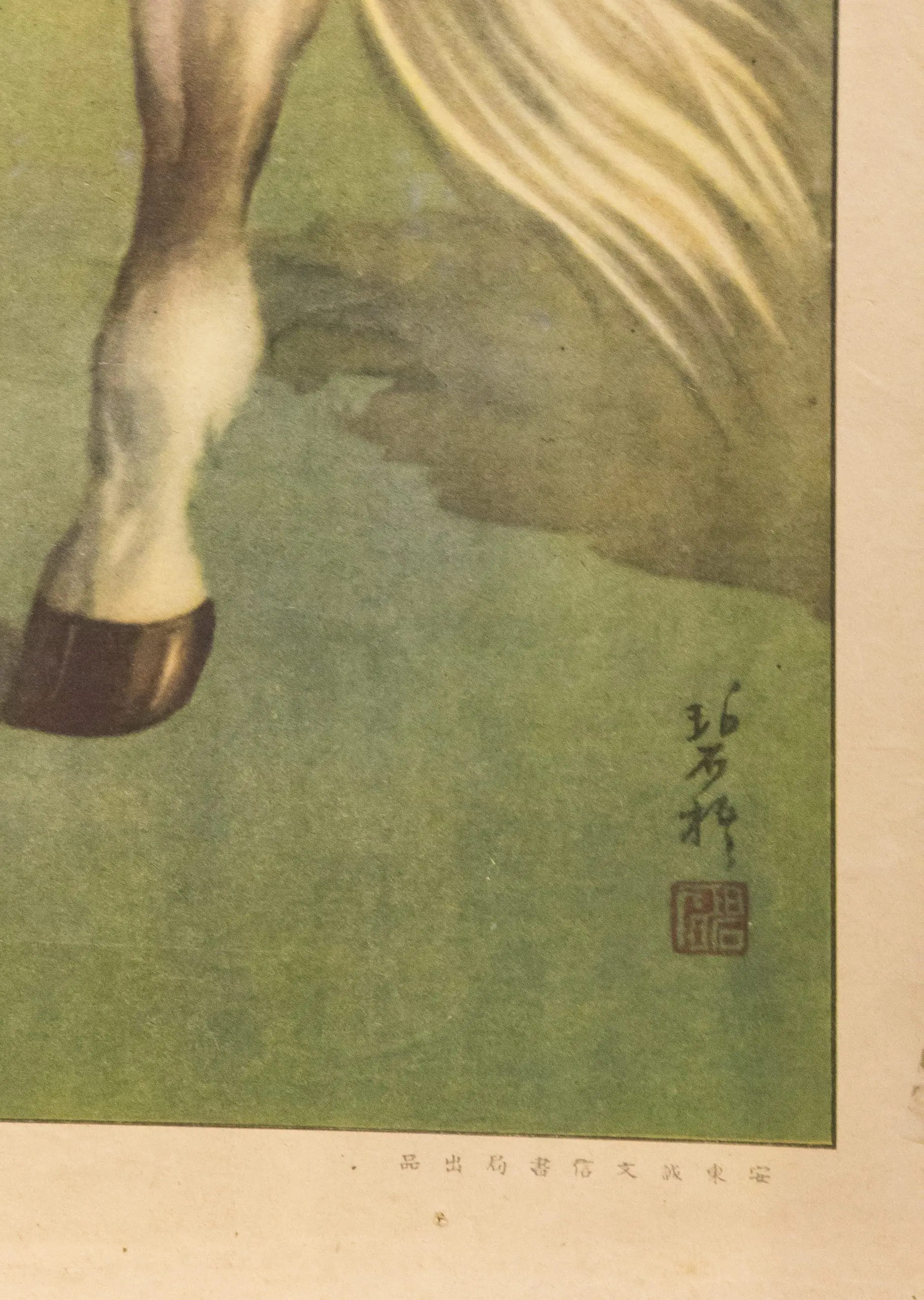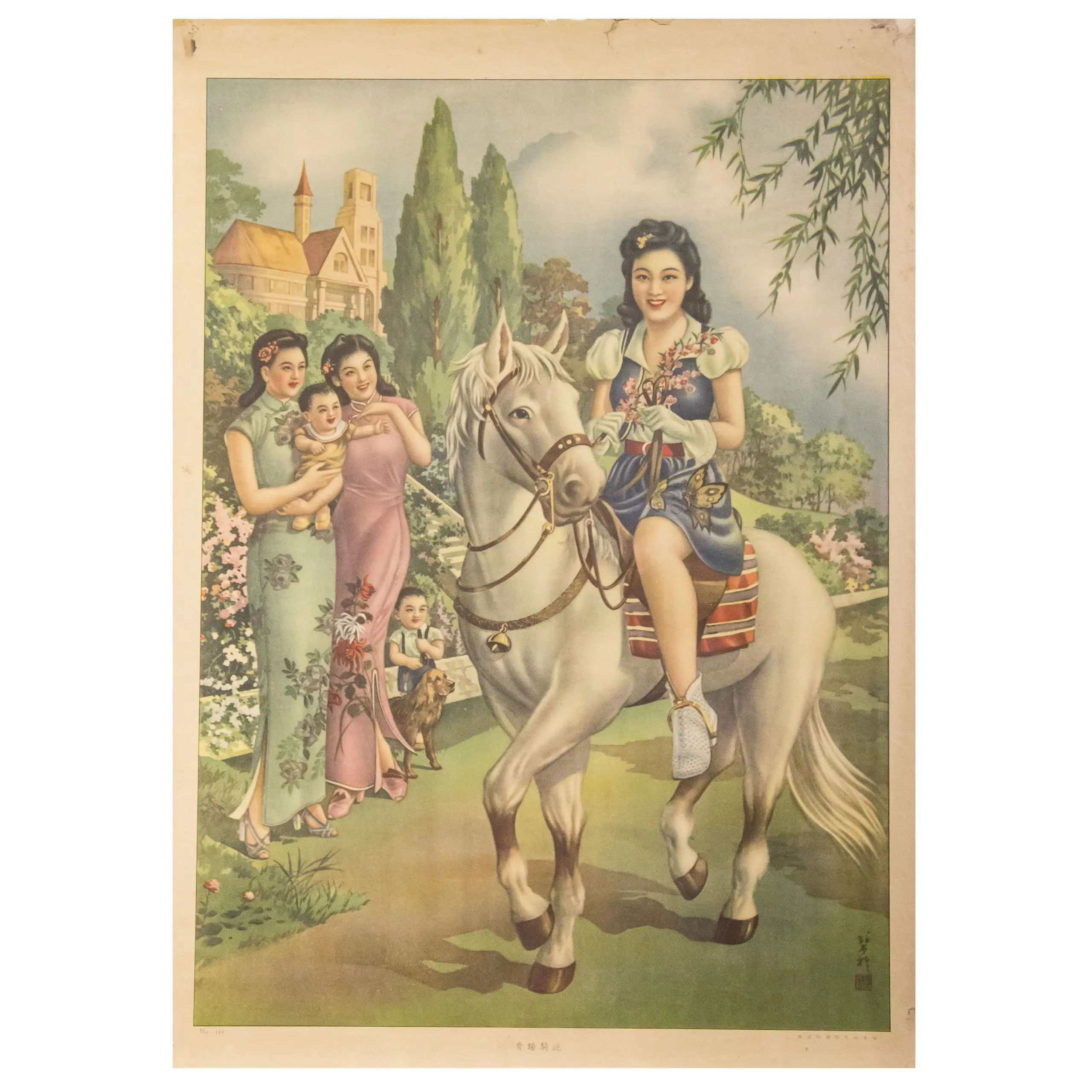 | Description | Shanghai lithograph advertising poster, circa late 1930s–1940s, depicting fashionable women and children in an idealized garden scene. The modern equestrian motif suggests elegance and prosperity. Bears the brush signature and square seal of Xie Zhiguang (謝之光), a leading calendar-poster artist, enhancing both artistic and collector value. |