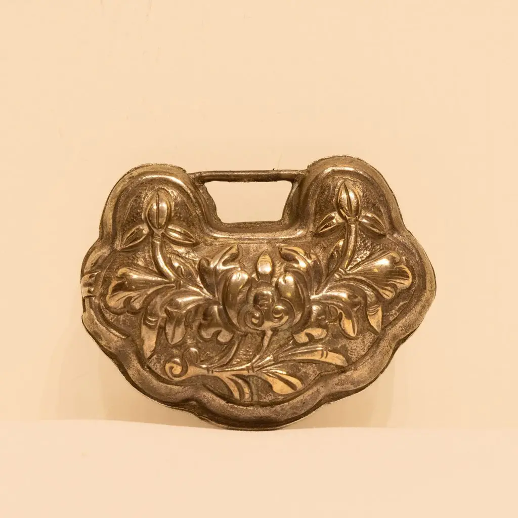 | Description | An ornate silver amulet featuring a repoussé floral design symbolizing prosperity and protection. The soft curves and embossed petals highlight fine mid-19th century Chinese silversmithing. Originally paired with a black ribbon for suspension, such locks were often gifted to children as amulets to safeguard health, longevity, and good fortune. |